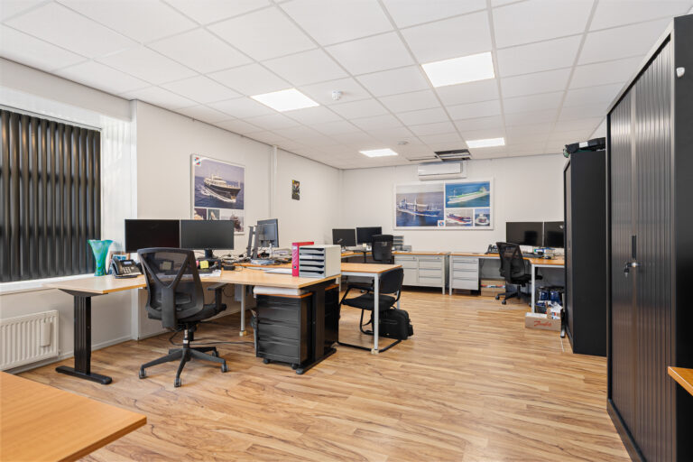 De beschikbare ruimte bestaat uit een combinatie van kantoor- en bedrijfsruimte. De kantoorruimte heeft een oppervlakte van circa 140 m² op de begane grond en circa 235 m² op de eerste verdieping. De bedrijfsruimte omvat circa 470 m², waarvan 95 m2 als berging/ archief. Het totale complex bestaat uit vier bedrijfsunits. Dankzij de flexibele opzet kunnen de oppervlakten desgewenst worden aangepast aan uw specifieke bedrijfsbehoefte.