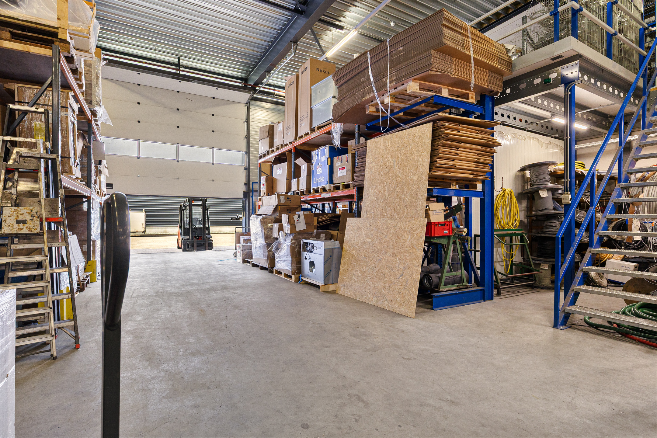De bedrijfsruimte is uitgerust met een elektrische overheaddeur, verlichtingsinstallaties, een betonvloer, een vrije hoogte van minimaal 6,00 meter, een gasheater en krachtstroomaansluitingen. De entresolvloeren maken geen onderdeel uit van deze aanbieding.