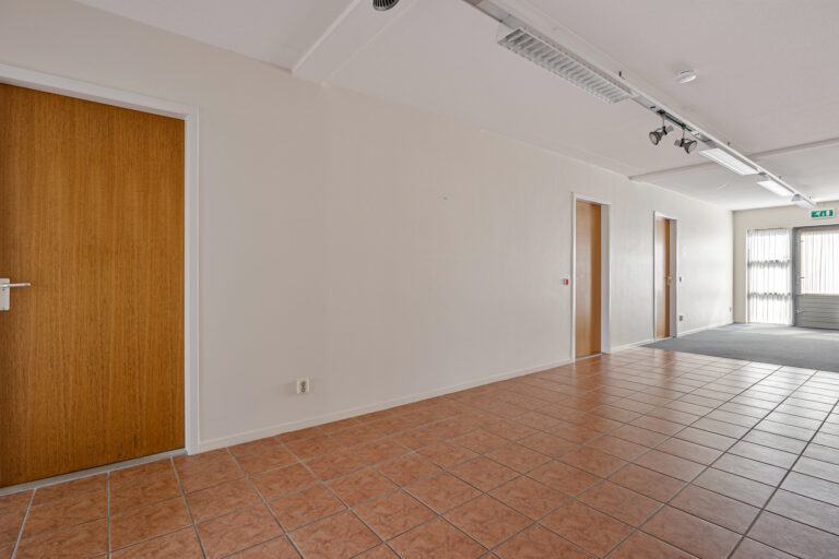 Het pand beschikt over een doordachte en functionele indeling, volledig gesitueerd op de begane grond. Via de royale entree krijgt u toegang tot een veelzijdige open werkruimte die zich uitstekend leent voor verschillende doeleinden, zoals kantoorruimte, showroom of productieruimte. Deze ruimte beschikt tevens over een achterdeur met directe toegang tot het buitenterrein.