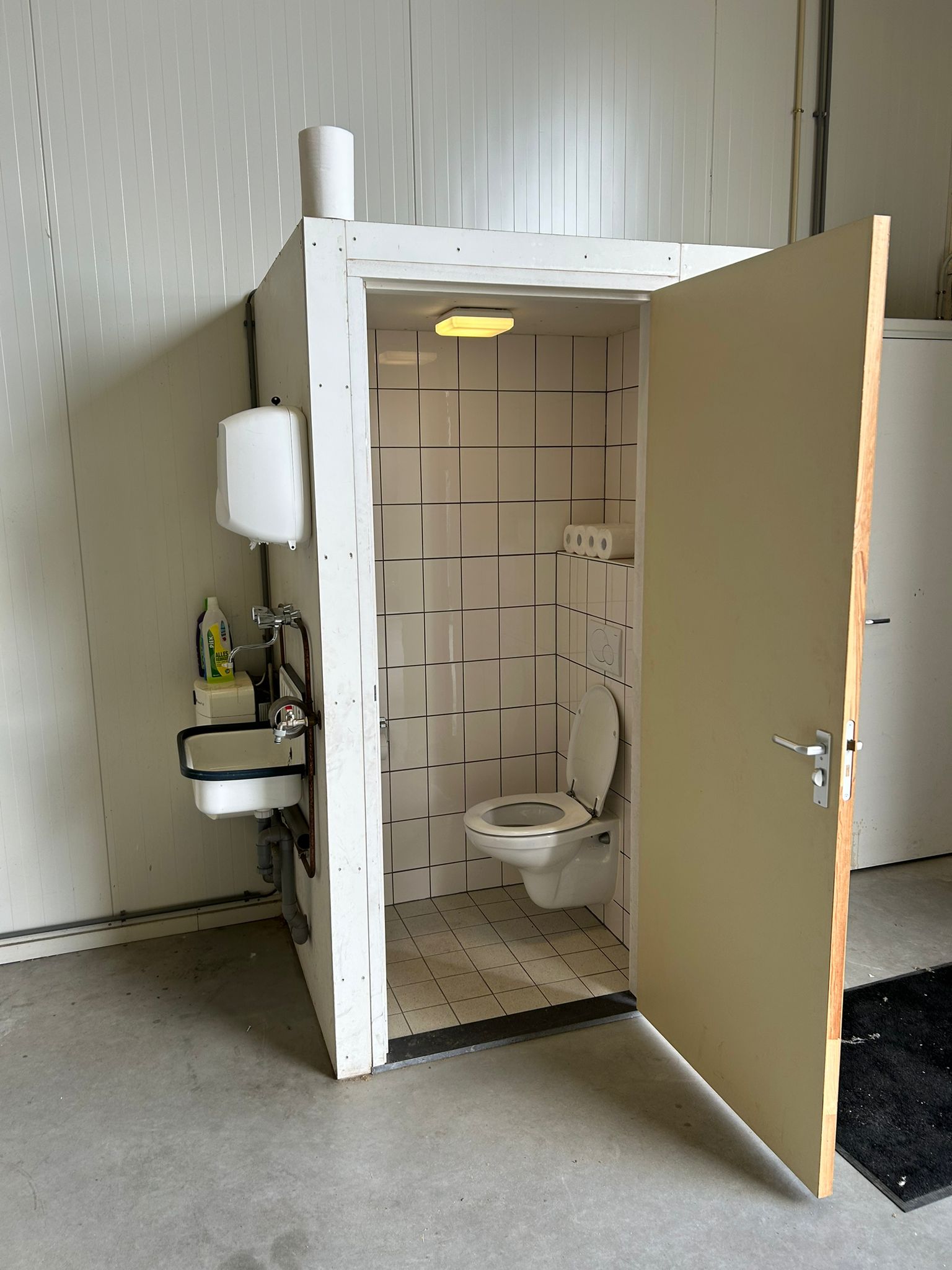 Overige voorzieningen: elektrisch bediende overheaddeur, krachtstroom, led verlichting, toilet, uitstortgootsteen en boiler.