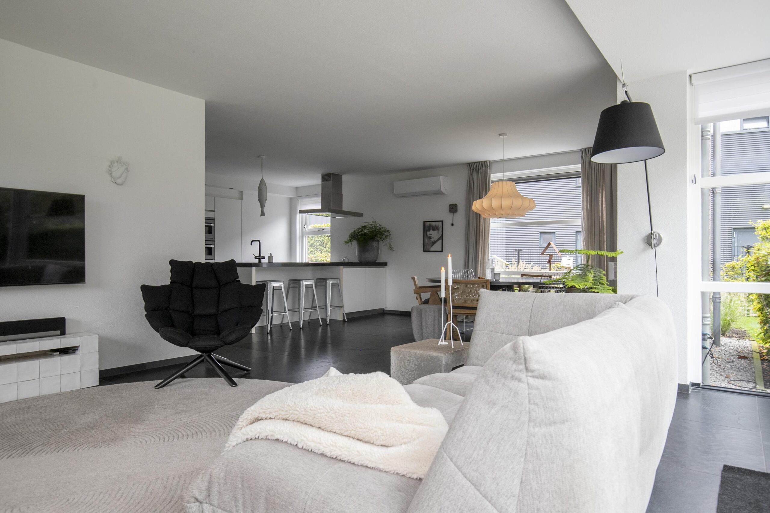 Grenzend aan de keuken ligt de eetkamer, met voldoende plek voor een royale eettafel. Een fijne plek om gezellig te borrelen of uitgebreid te dineren met vrienden en familie. De woonkamer is een heerlijke lichte ruimte, dankzij de grote pui met openslaande deuren naar de tuin. Hier is alle ruimte om te loungen of te ontspannen bij de sfeervolle gashaard. De gehele begane grond is voorzien van vloerverwarming, wat zorgt voor extra comfort en een aangenaam binnenklimaat.