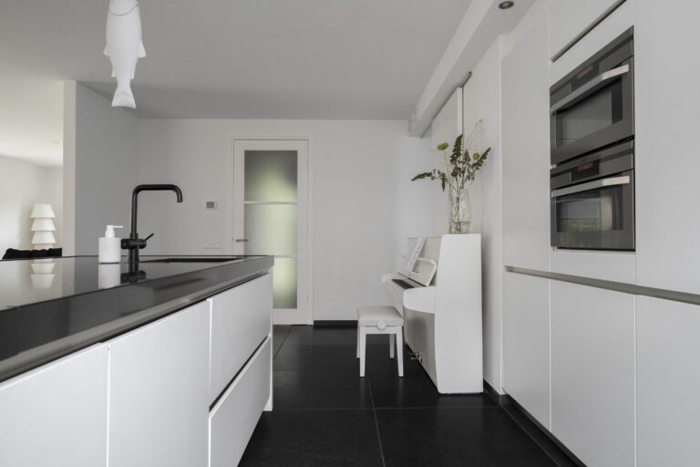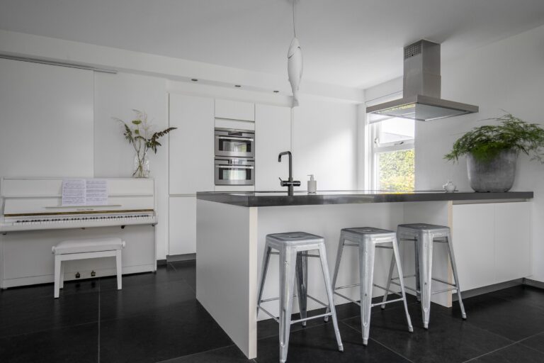 De ruime woonkeuken vormt het hart van de woning. Het strakke, tijdloze design combineert functionaliteit met stijl. De keuken is voorzien van een groot kookeiland met inductiekookplaat, afzuiging, vaatwasser, Quooker en dubbele oven. Hier is het heerlijk koken en samenzijn, met volop werk- en kastruimte.