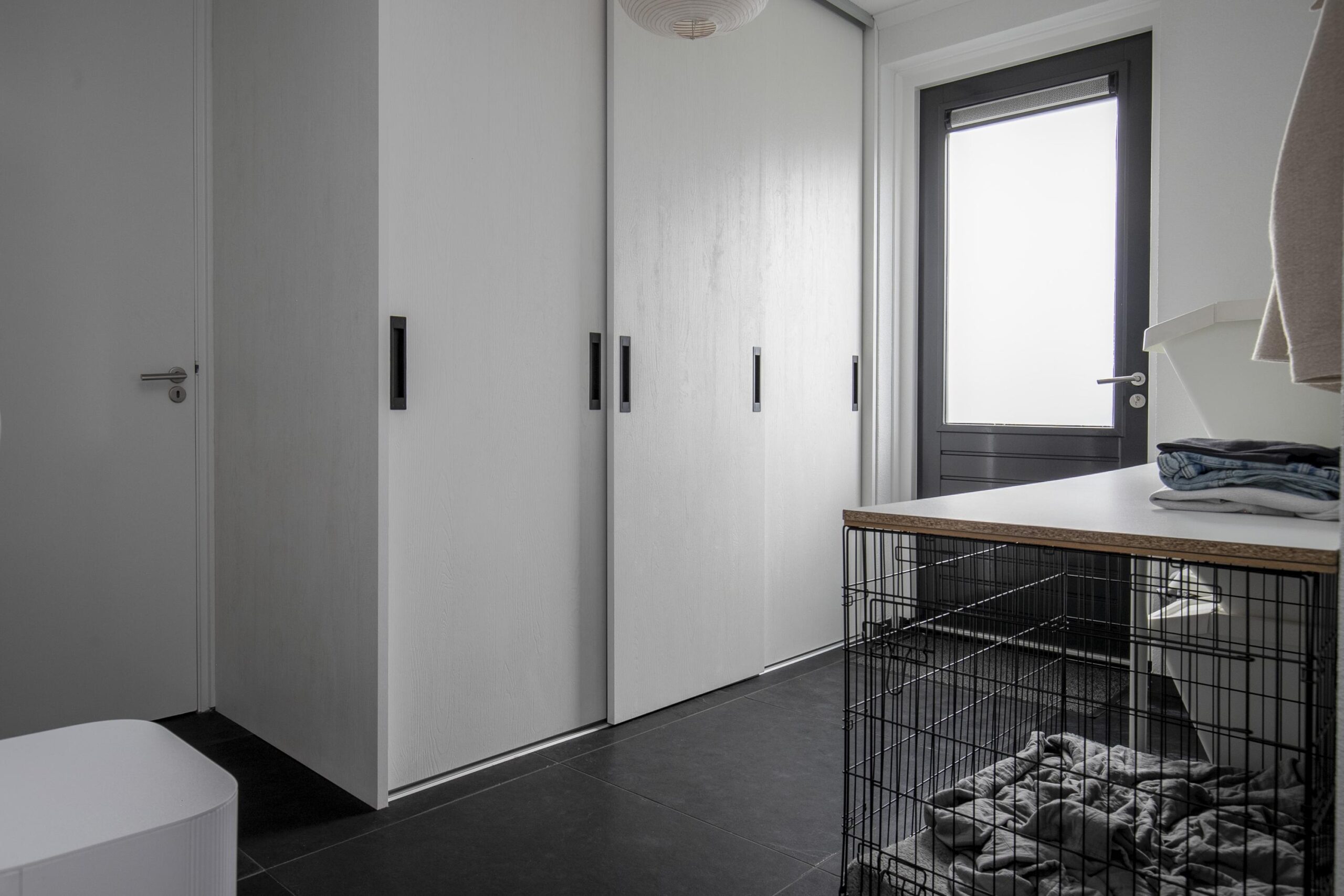 Via de keuken is de bijkeuken bereikbaar, met vaste kasten en aansluitingen voor wasmachine en droger. Vanuit de bijkeuken is bovendien een slaapkamer op de begane grond toegankelijk. Ideaal als logeerkamer, werkkamer of hobbyruimte.