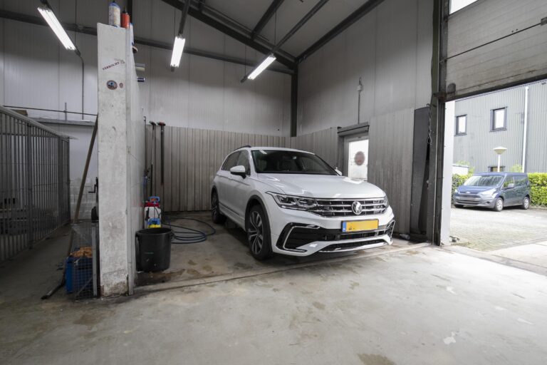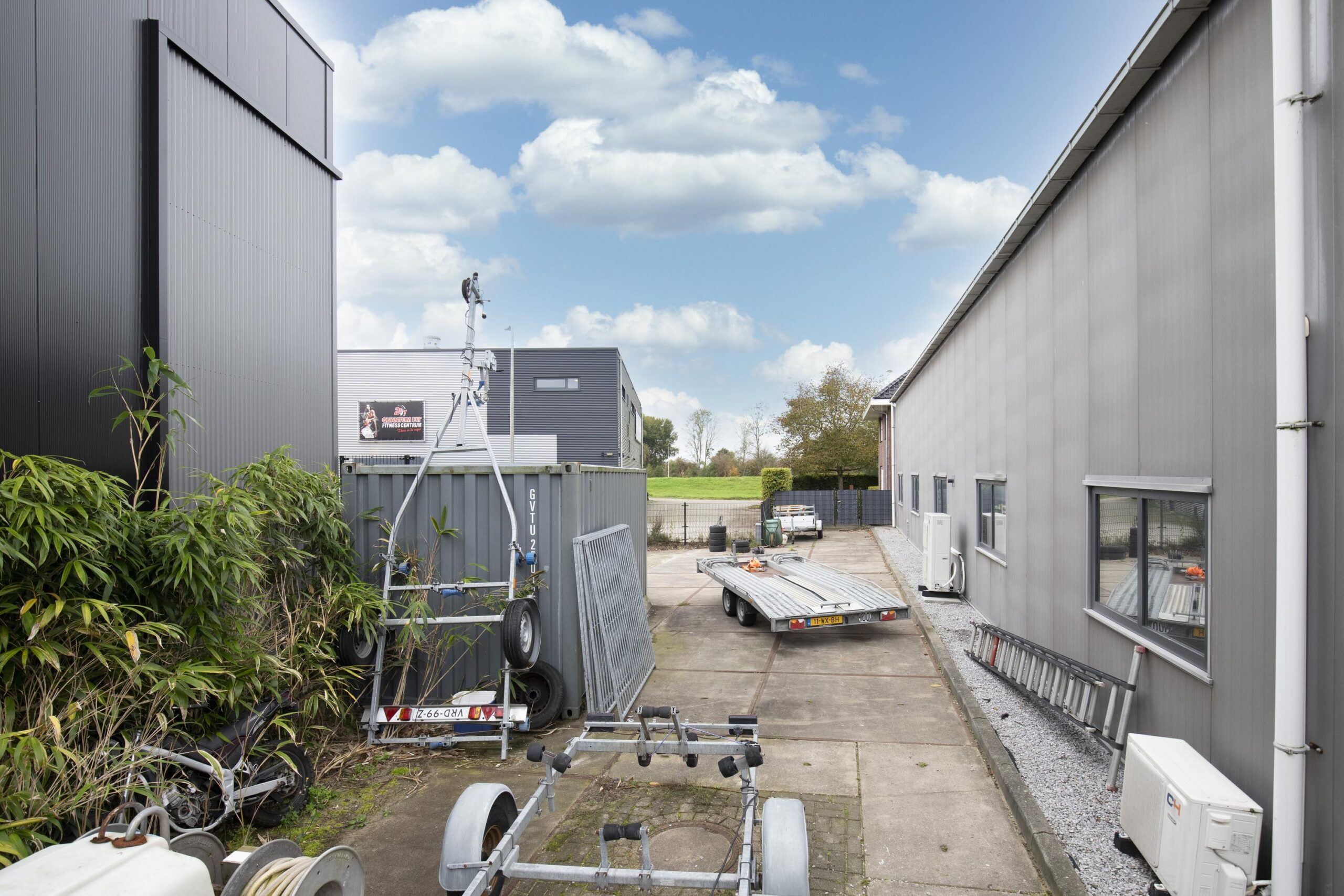 Het terrein rondom de bedrijfshal is volledig omheind en toegankelijk via een automatische rolpoort aan de voorzijde. Aan de voorkant is ruimte voor circa 10 voertuigen, en achter het gebouw is extra parkeerruimte beschikbaar. Met een extra overheaddeur aan de achterzijde kan eenvoudig een doorrijmogelijkheid worden gecreëerd.
