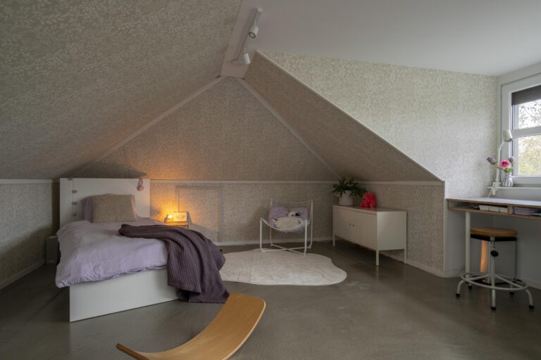 Op de tweede verdieping is een sfeervolle vierde slaapkamer gerealiseerd. Dankzij de dakkapel (geplaatst in 2020) is hier veel extra leefruimte en licht ontstaan, waardoor de kamer een volwaardige verdieping vormt. De ruimte is keurig afgewerkt en voorzien van een vaste kast waarin de cv-installatie is geplaatst. Deze verdieping leent zich uitstekend als slaapkamer, hobbyruimte of rustig thuiskantoor.