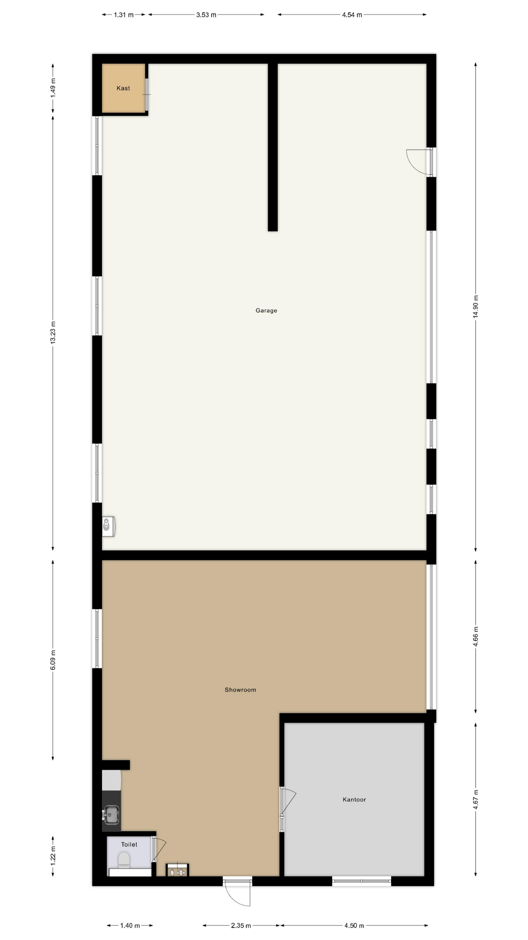 • Circa 233 m² geïsoleerde bedrijfshal met kantoor/showroom