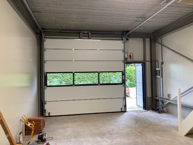 -Elektrische geïsoleerde overheaddeur en separate loopdeur.
