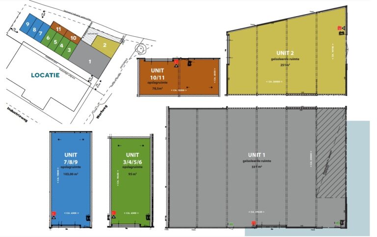 Deze multifunctionele bedrijfsunit heeft een oppervlakte van ca. 119 m2, waarvan ca. 79 m2 begane grond (maximale vloerbelasting 1.000 kg/m2) en ca. 40 m2 op de 1e verdieping (maximale vloerbelasting 360 kg/m2) en maakt deel uit van een bedrijfsverzamelgebouw.
