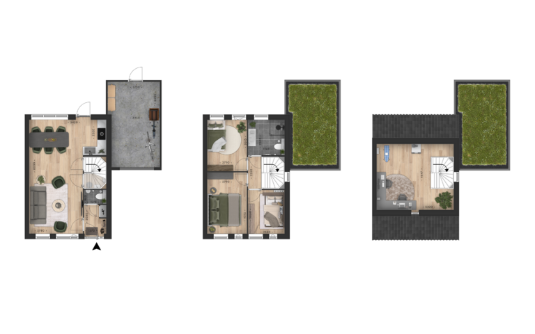 De woningen worden energieneutraal opgeleverd en zijn voorzien van vloerverwarming, een geavanceerde bodemwarmtepomp en zonnepanelen.