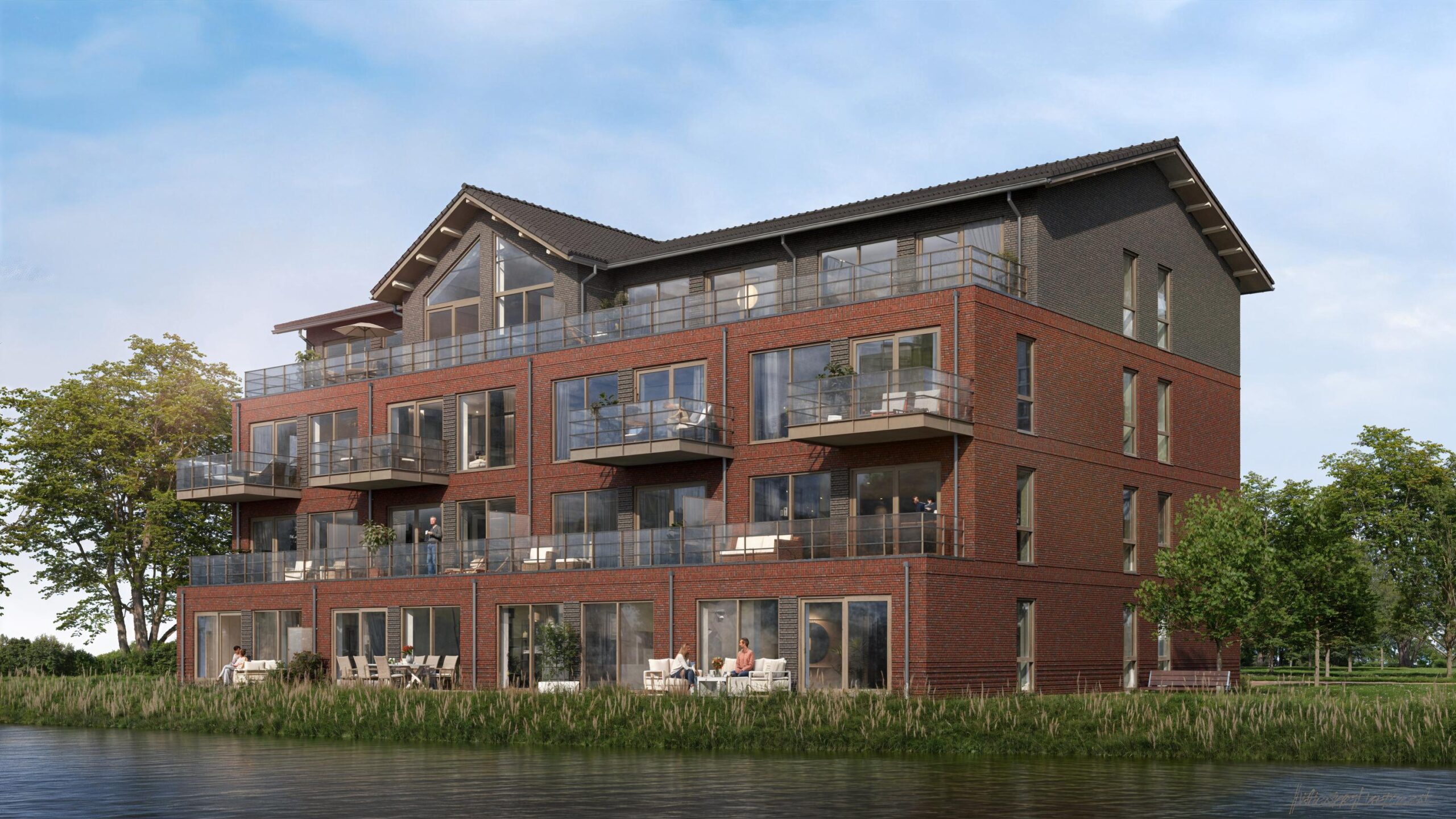 Via de grote schuifpui stap je zo het fijne terras of balkon op, waar je volop kunt genieten van het prachtige uitzicht op het water en de rustgevende omgeving. De afwerking is van hoog niveau, met oog voor duurzaamheid, comfort en moderne luxe.