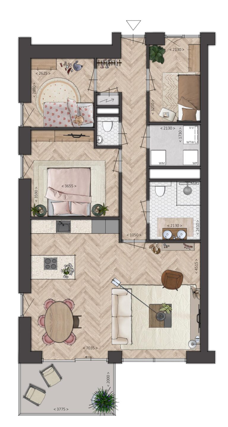 De bouw is inmiddels gestart en de oplevering staat gepland voor de zomer van 2026. Met drie ruime slaapkamers is dit appartement perfect voor wie meer leefruimte wil combineren met comfort en stijl. Of je nu een werkkamer, logeerkamer of hobbyruimte wilt inrichten, hier kan het allemaal. De praktische indeling zorgt voor een optimaal gebruik van de woonruimte, terwijl de sfeervolle woonkamer uitnodigt om heerlijk te ontspannen.