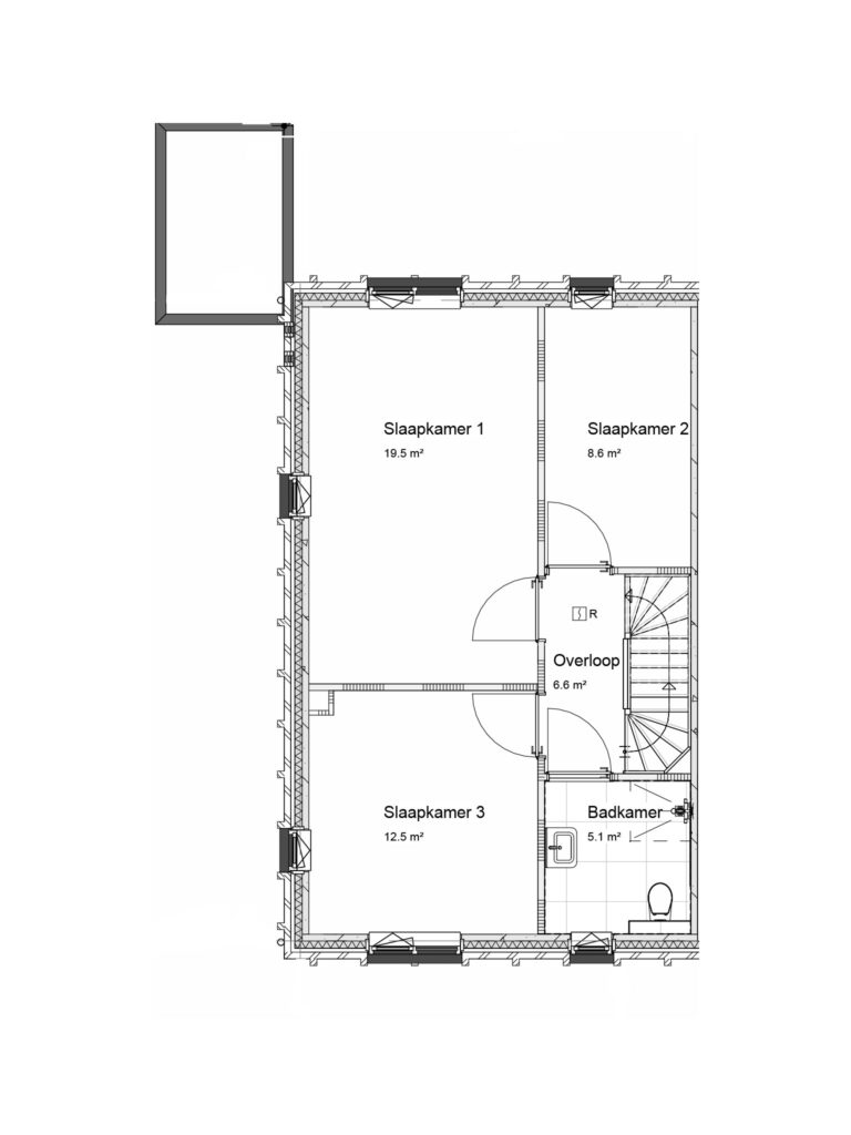 De 1e etage onthult via de overloop 3 kamers. De mogelijkheden zijn eindeloos. Slaapkamers voor de kinderen, een werkkamer of nog een gastenverblijf. De compacte maar complete badkamer met douche, wastafel en 2e toilet biedt alles wat je nodig hebt. Het echte avontuur wacht op zolder. Hier geef je vorm aan alle dromen die nog geen plek hebben gekregen . Bijvoorbeeld een thuisbioscoop of spelletjesruimte. Verder is er een technische ruimte die perfect is voor de wasmachine en droger.