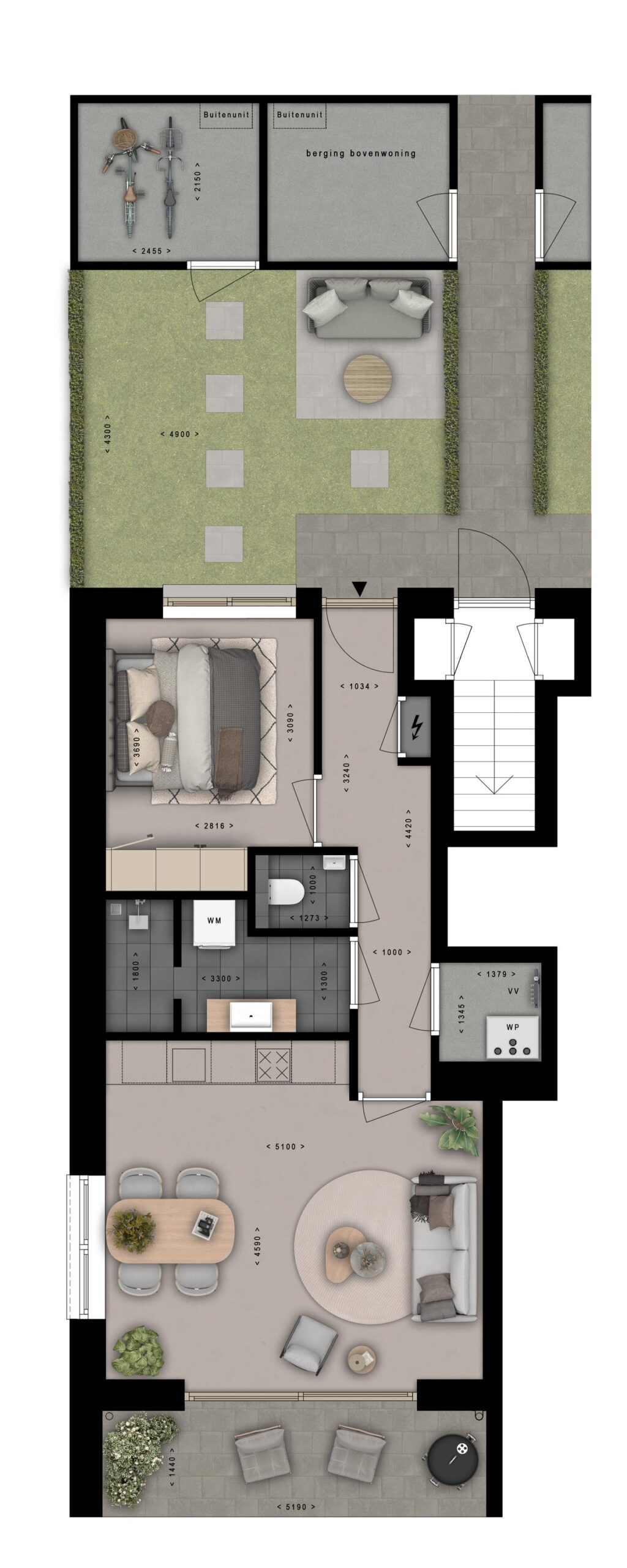 De sfeervolle benedenwoningen hebben een woonoppervlakte van ca. 50 m². De woning biedt een gelijkvloerse plattegrond voorzien van een entree, slaapkamer, toilet, badkamer, berging, open woonkeuken en een terras op het zuiden met een grote gevelpui, waardoor het woongedeelte heerlijk licht is. Deze benedenwoningen hebben ook een eigen achtertuin en zijn ideaal voor senioren en starters.