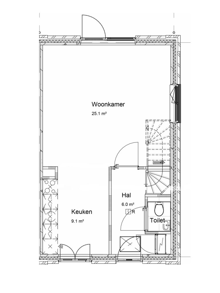 De hal is praktisch met het toilet, de meterkast en de trap naar boven. De open verbinding tussen de keuken en woonkamer maakt dit de perfecte ontmoetingsplek van het huis. Hier maak je mooie herinneringen. Samen ontbijten, goede gesprekken met vrienden en heerlijke diners waar iedereen zijn verhalen deelt. Door de openslaande deuren stap je zo de westelijke tuin in. Gegarandeerd genieten van de zon die ’s avonds precies op de juiste plek staat voor ontspannen buitenmomenten.