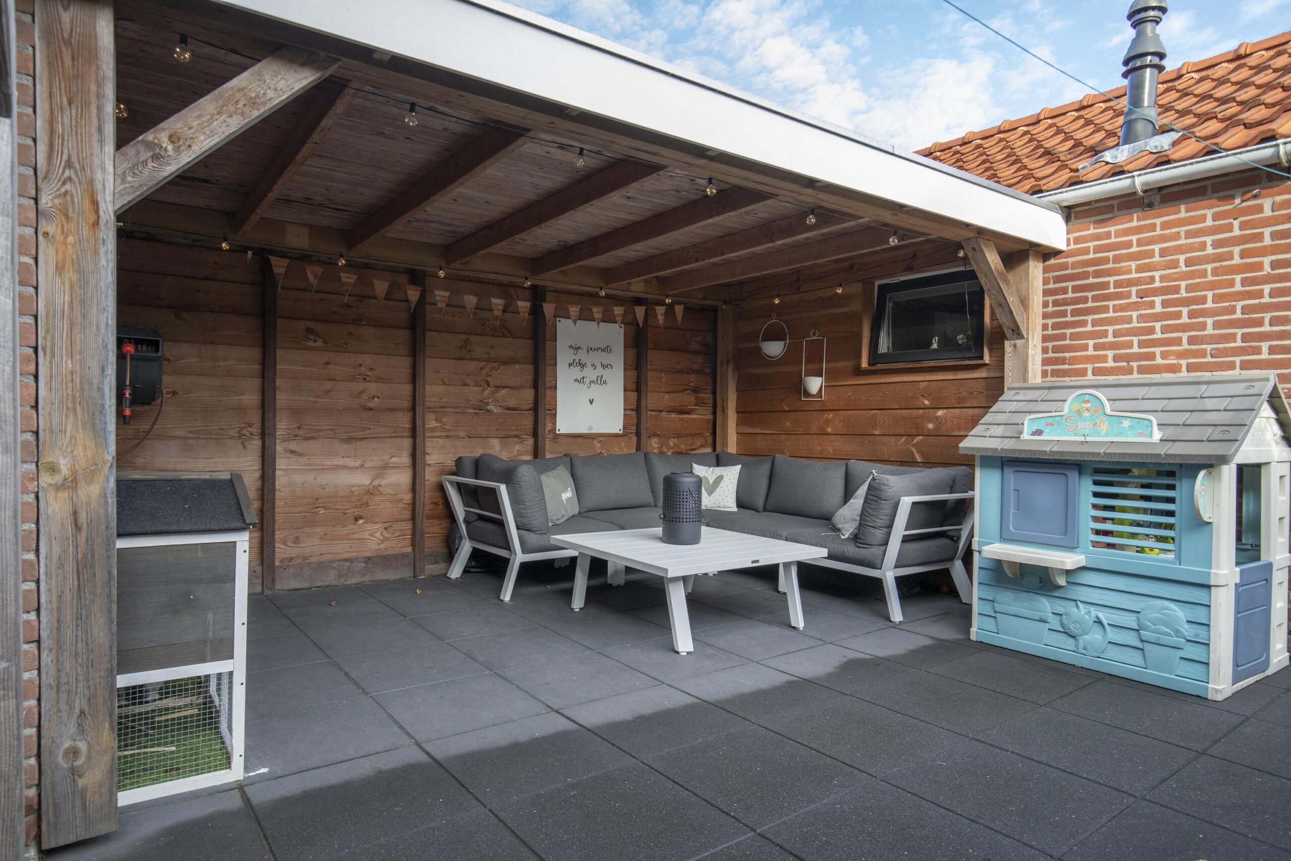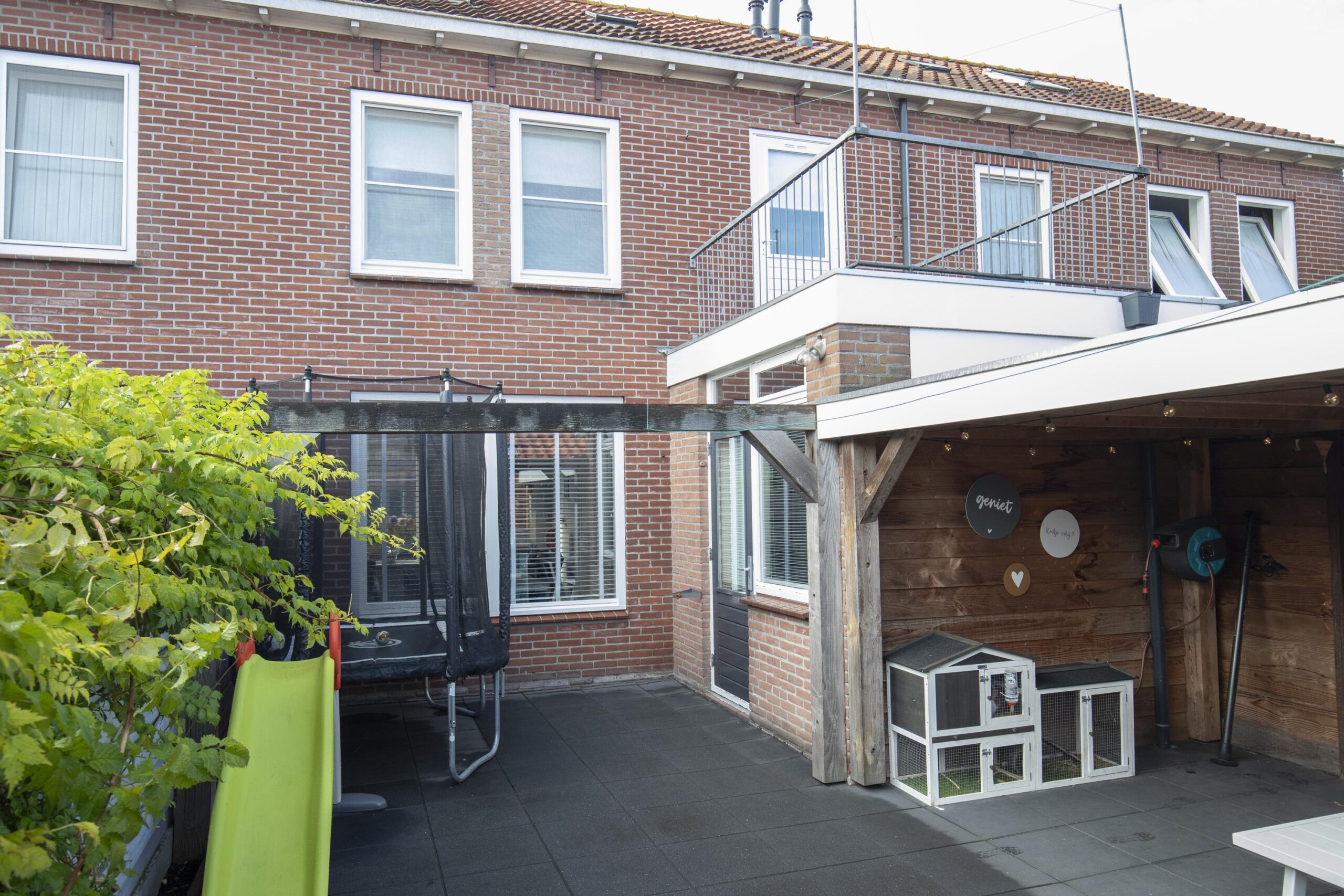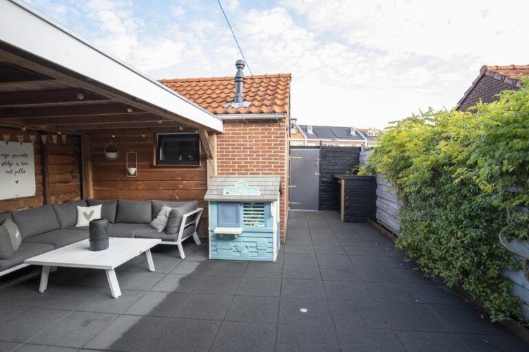 De achtertuin is onderhoudsarm aangelegd en beschikt over een berging en een achterom. Tussen de woning en de berging bevindt zich een gezellige veranda, waar je heerlijk kunt genieten van het buitenleven. De berging is circa 14 m² groot en biedt volop ruimte voor fietsen, tuinspullen of een werkbank.