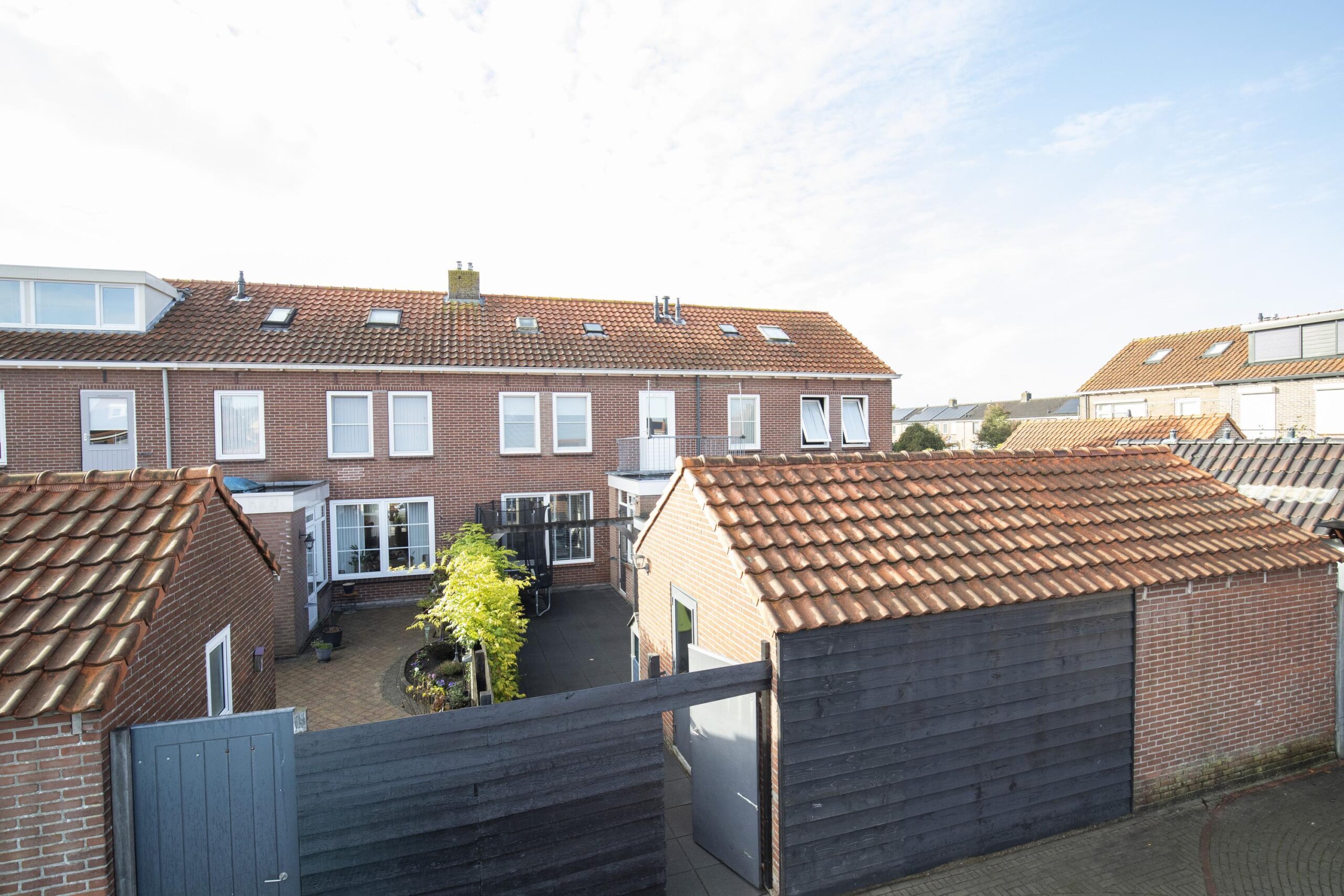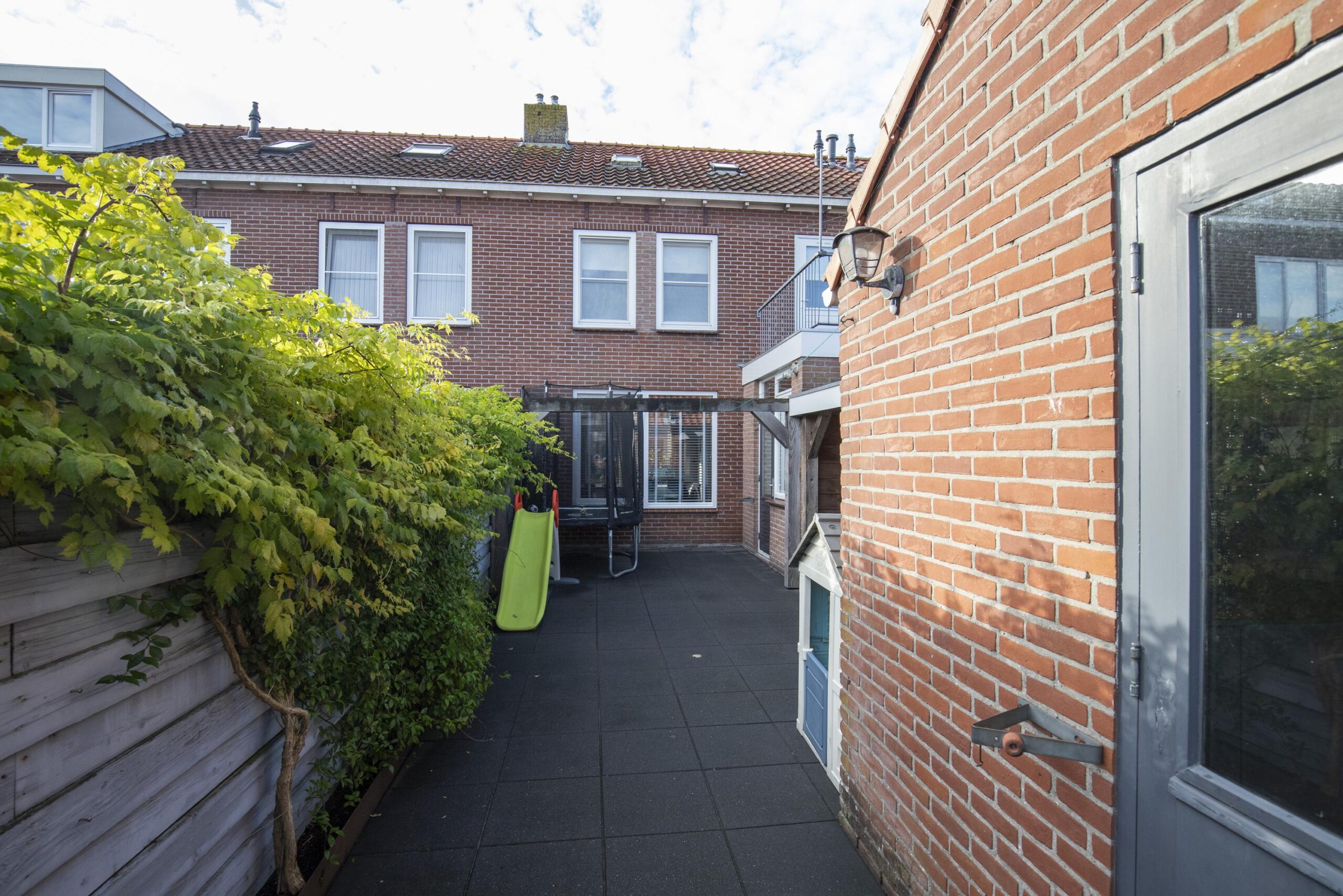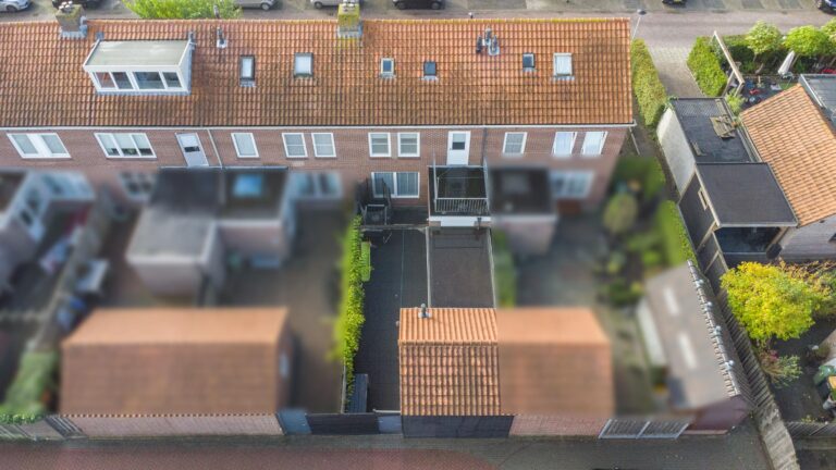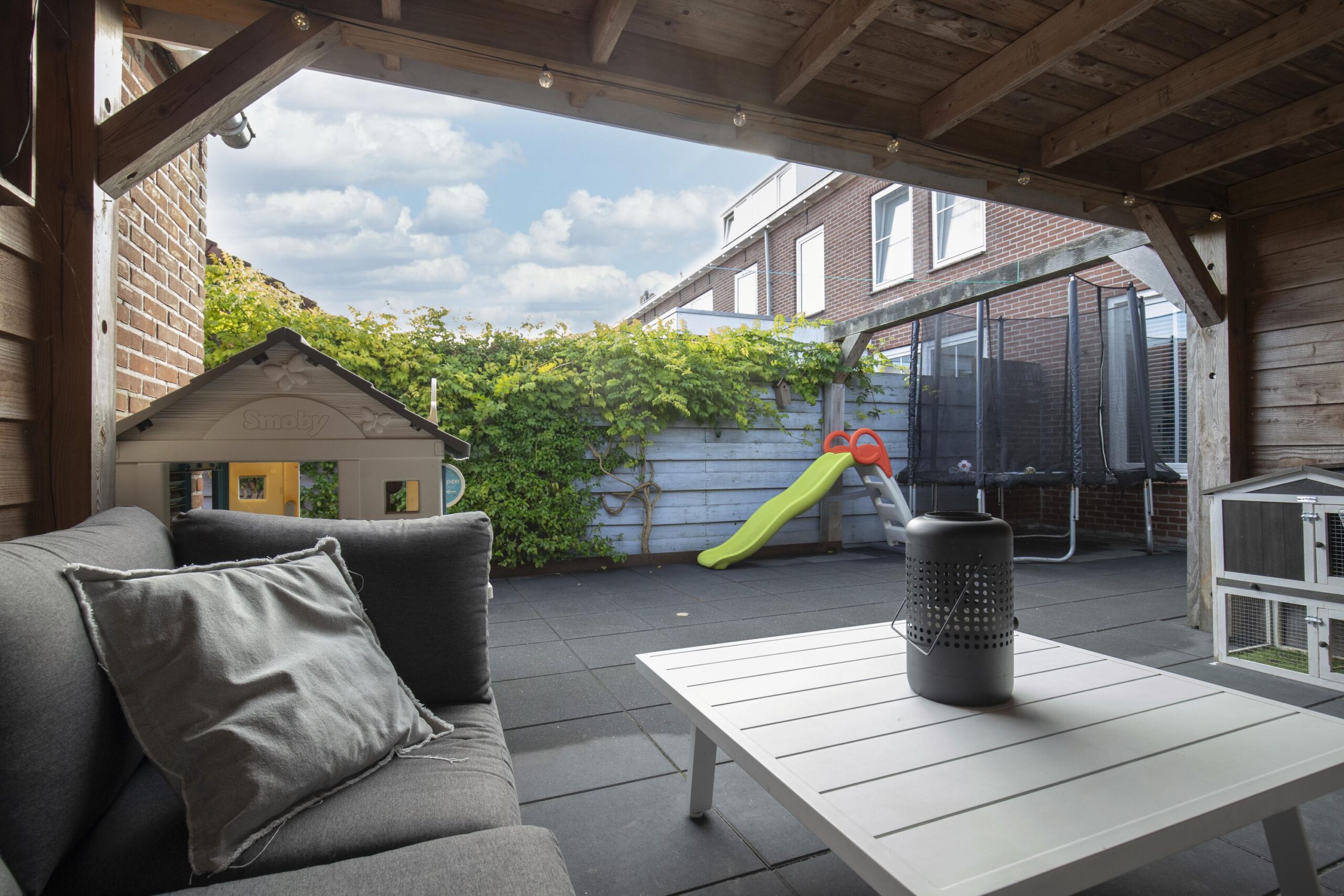De achtertuin is onderhoudsarm aangelegd en beschikt over een berging en een achterom. Tussen de woning en de berging bevindt zich een gezellige veranda, waar je heerlijk kunt genieten van het buitenleven. De berging is circa 14 m² groot en biedt volop ruimte voor fietsen, tuinspullen of een werkbank.