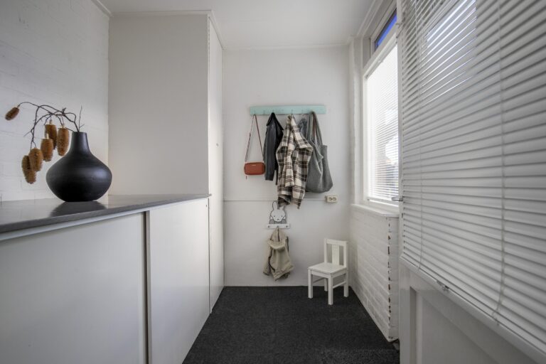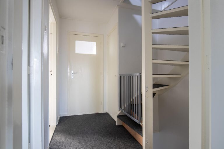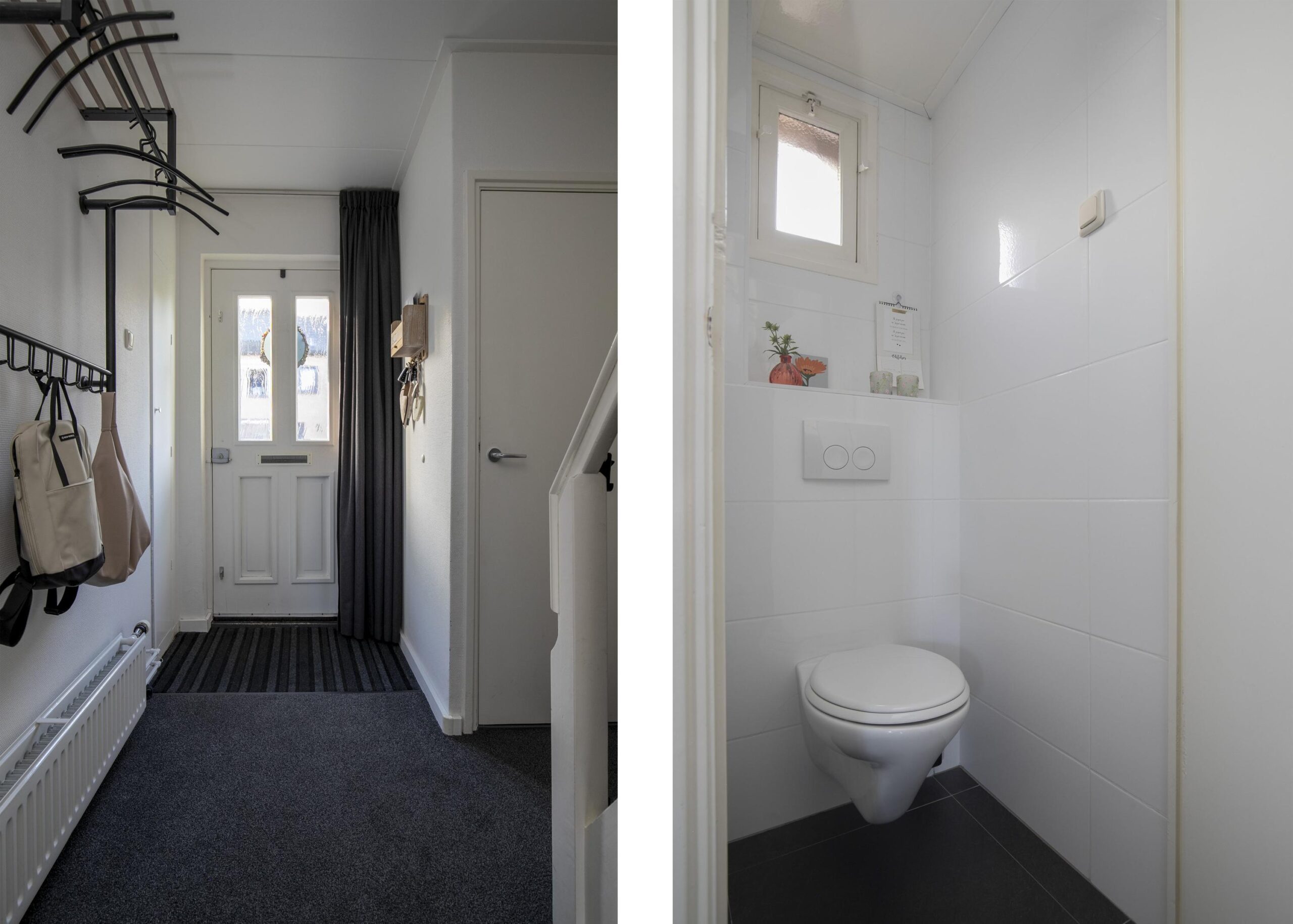 Via de entree met hal, toilet, meterkast en trapopgang bereik je de woonkamer. De trapkast biedt extra bergruimte.