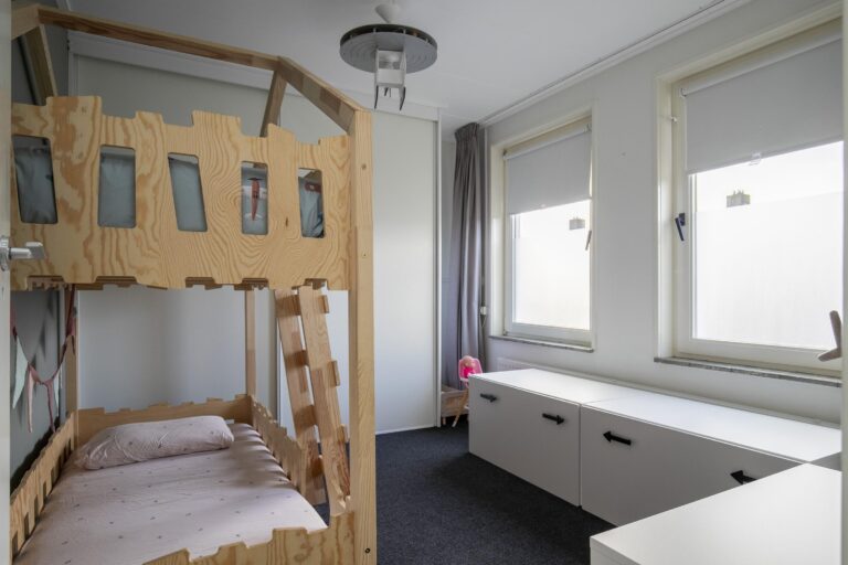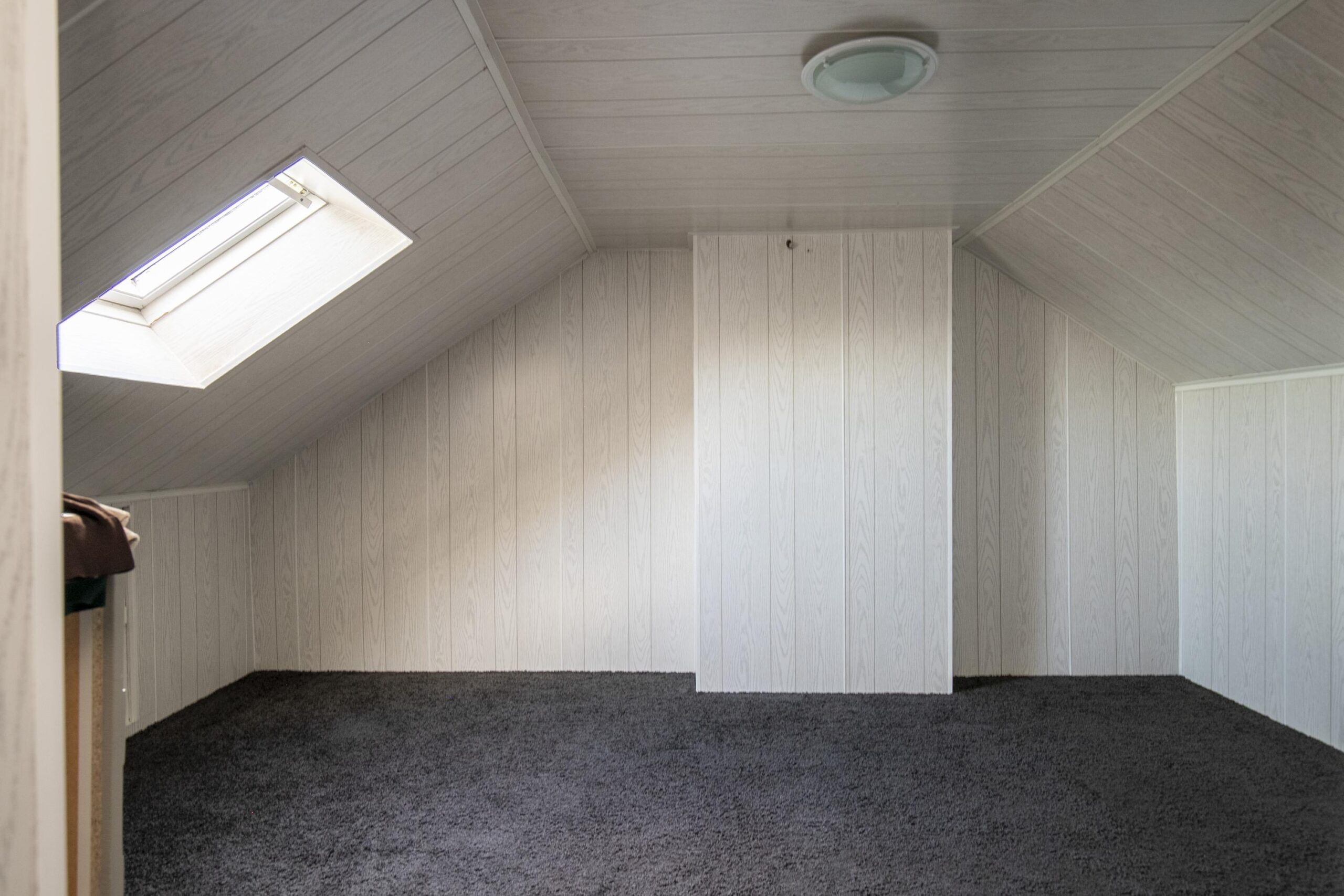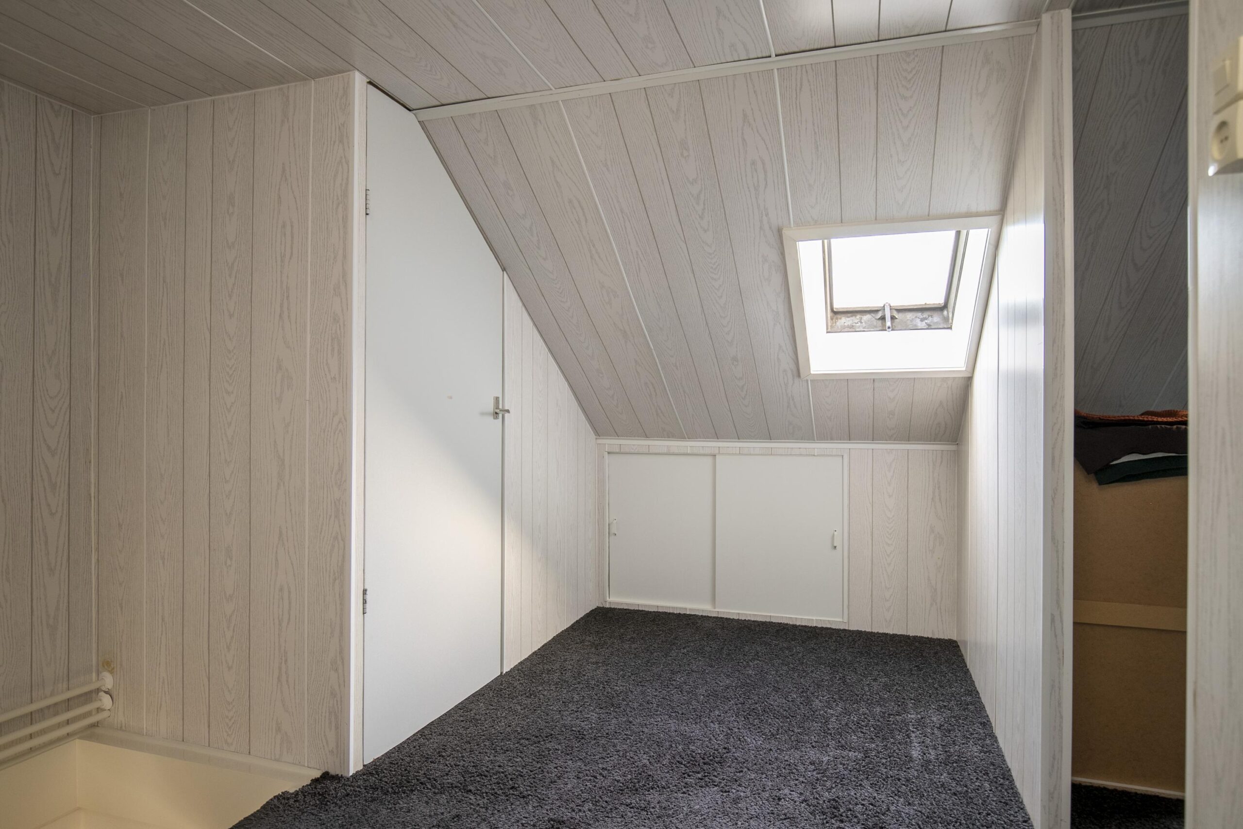 Via een vaste trap bereik je de tweede verdieping. Hier bevindt zich een vierde slaapkamer, voorzien van een dakraam en bergruimte achter de knieschotten.