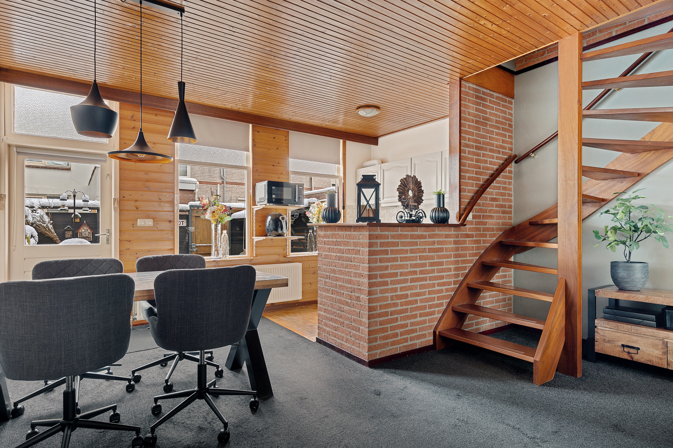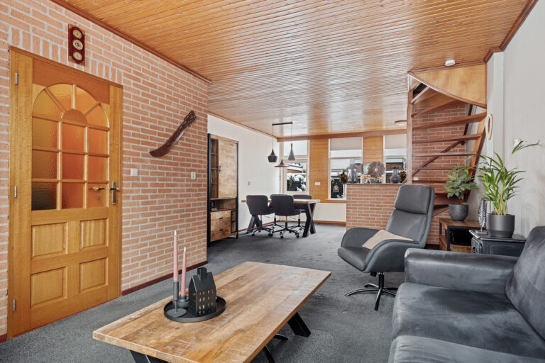 Via de voordeur betreed je de woning in de entree, waar zich ook het toilet bevindt. Vanuit hier loop je door naar de lichte en sfeervolle woonkamer. Deze ruimte biedt volop mogelijkheden voor een gezellig zitgedeelte én een eethoek waar je heerlijk kunt tafelen. Dankzij de open verbinding met de keuken voelt het geheel ruim en uitnodigend aan. De open trap in de woonkamer geeft de woning een speelse indeling en versterkt het open karakter van de begane grond.