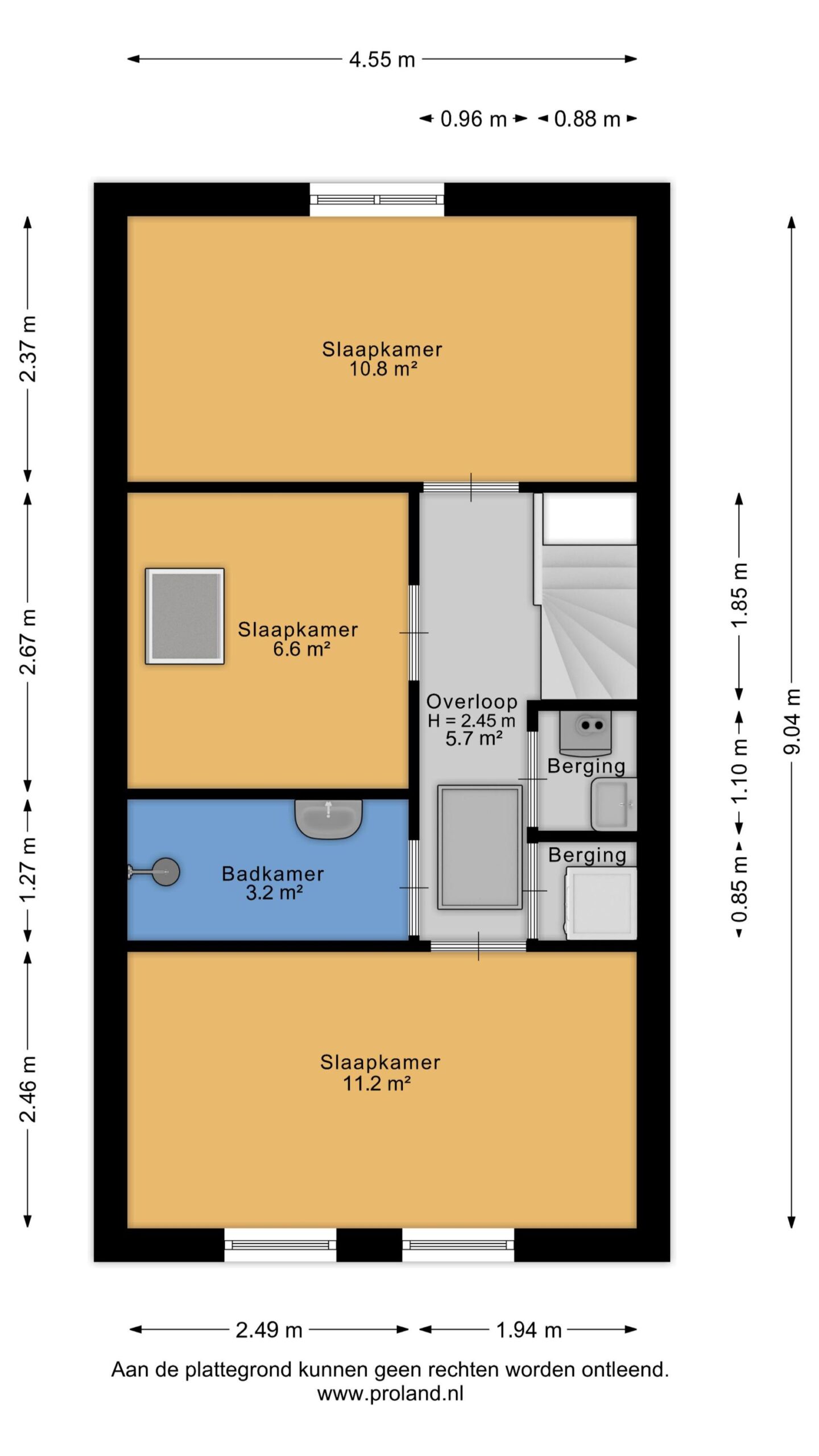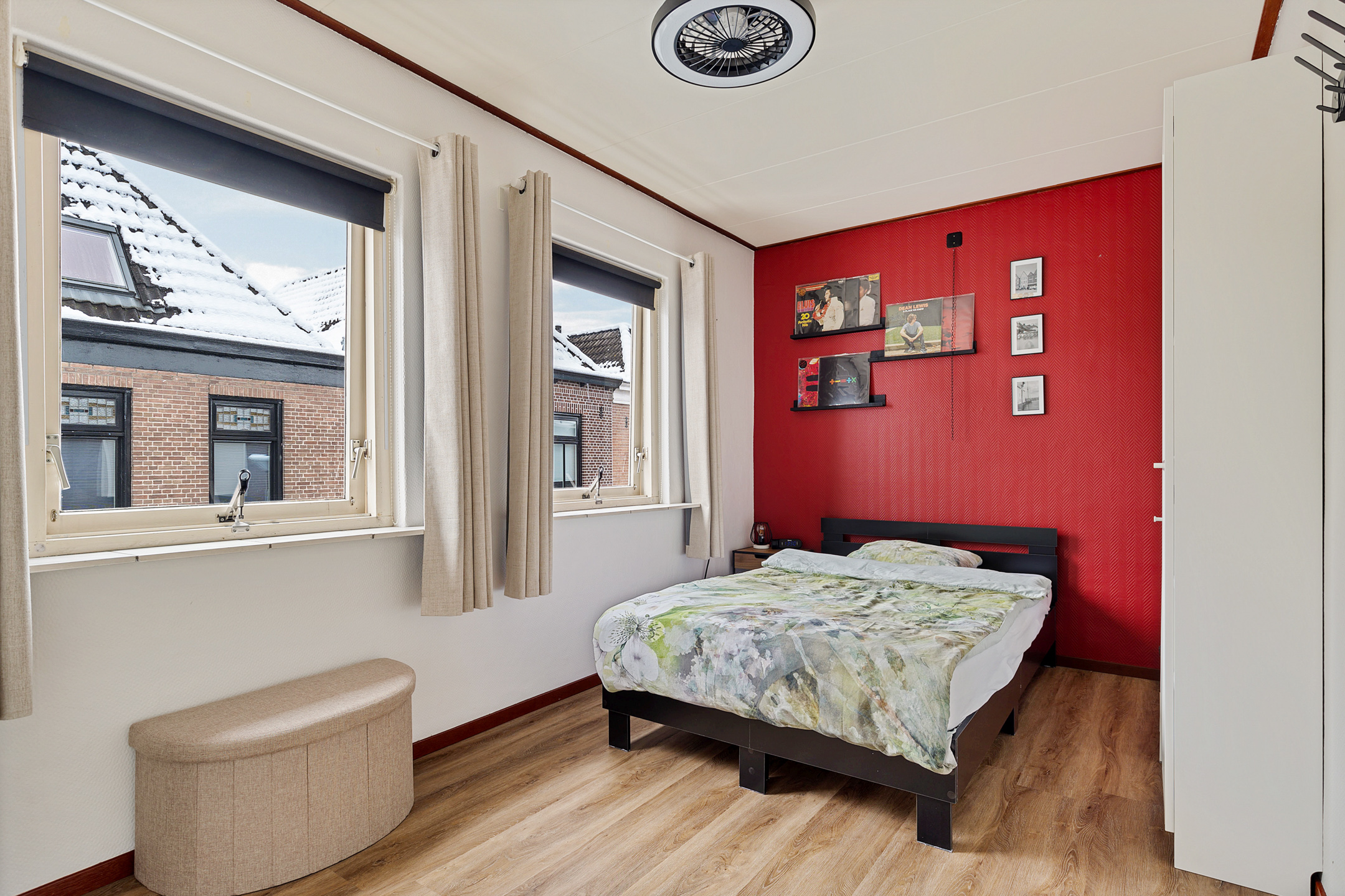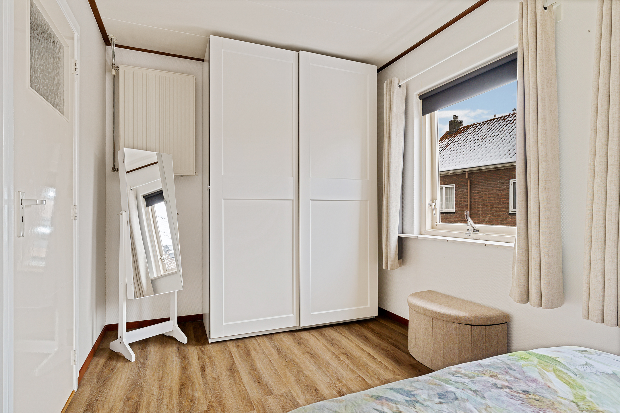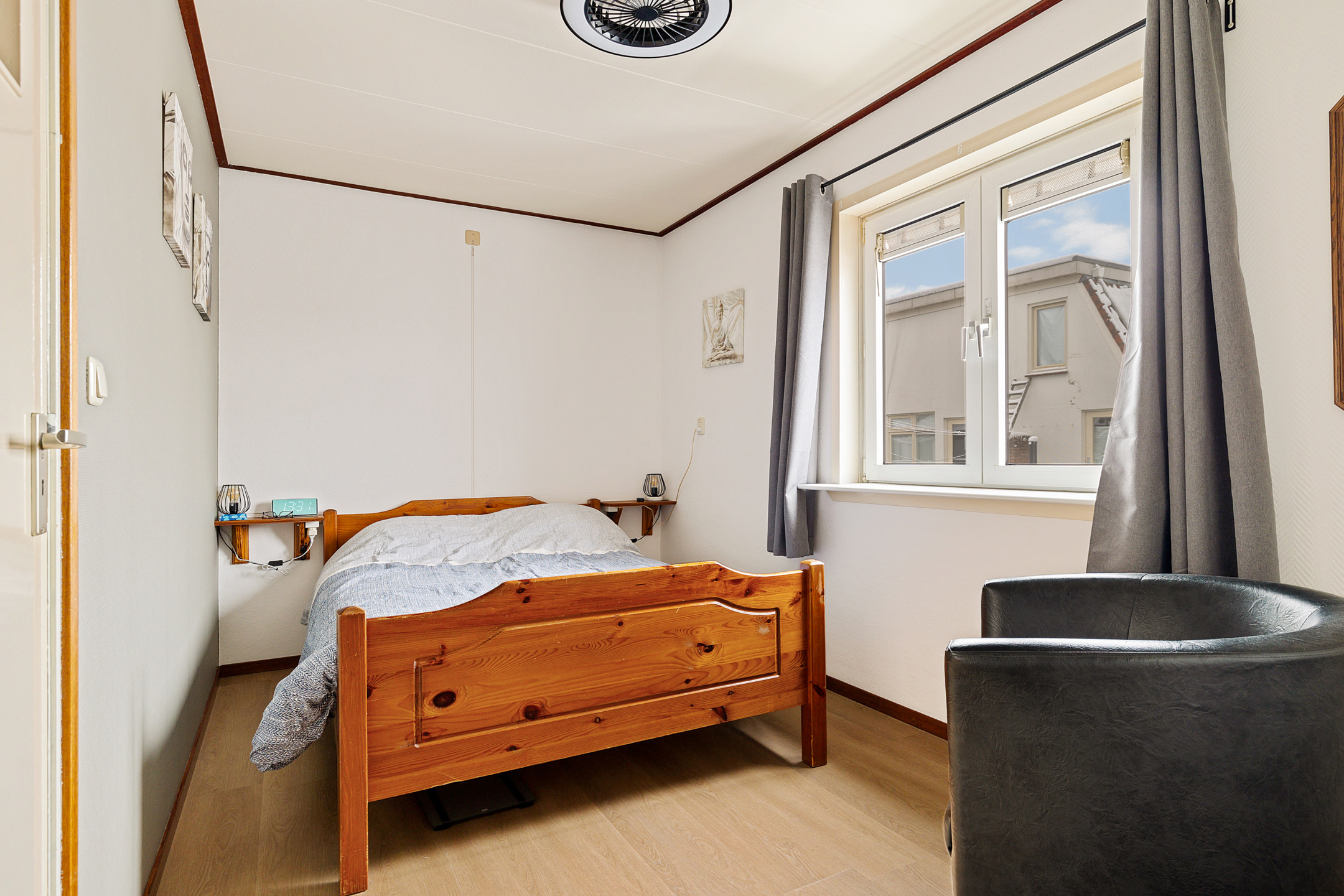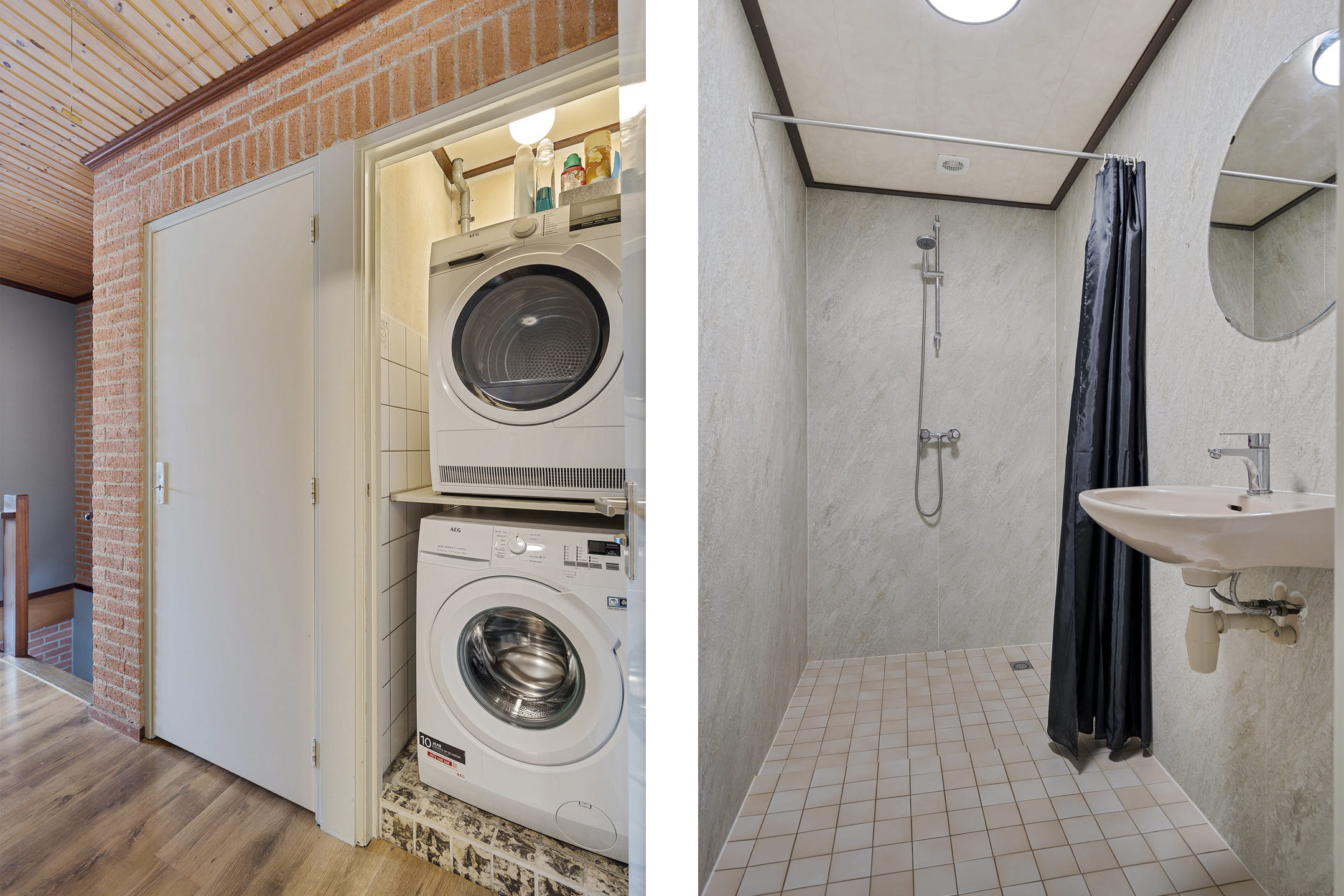Op de eerste verdieping bevinden zich drie slaapkamers, ideaal voor een starter, jong gezin of om één van de kamers in te richten als werk- of hobbyruimte. De slaapkamers zijn verdeeld over de verdieping met één kamer aan de voorzijde, één aan de achterzijde en één centraal gelegen. De badkamer is bereikbaar vanaf de overloop en is voorzien van een douche en wastafel. Daarnaast vind je op de overloop twee praktische kasten: één met aansluitingen voor wasmachine en droger en een tweede kast die uitstekend dienstdoet als extra bergruimte.