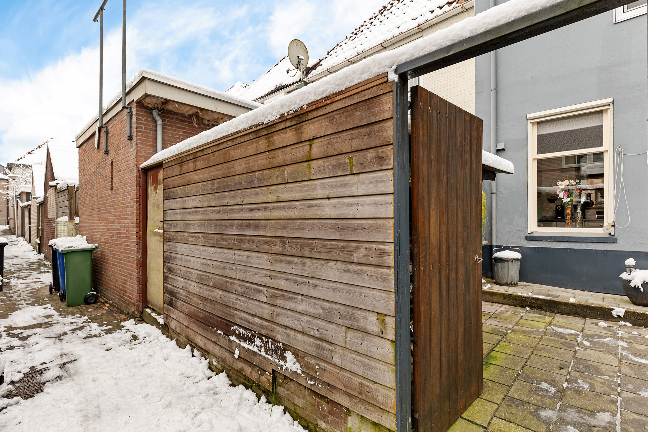 Vanuit de woonkamer stap je zo de achtertuin in. Een fijne, beschutte plek waar je op zonnige dagen heerlijk buiten kunt zitten, ontspannen of gezellig kunt eten na een lange werkdag. De tuin beschikt over een achterom.
