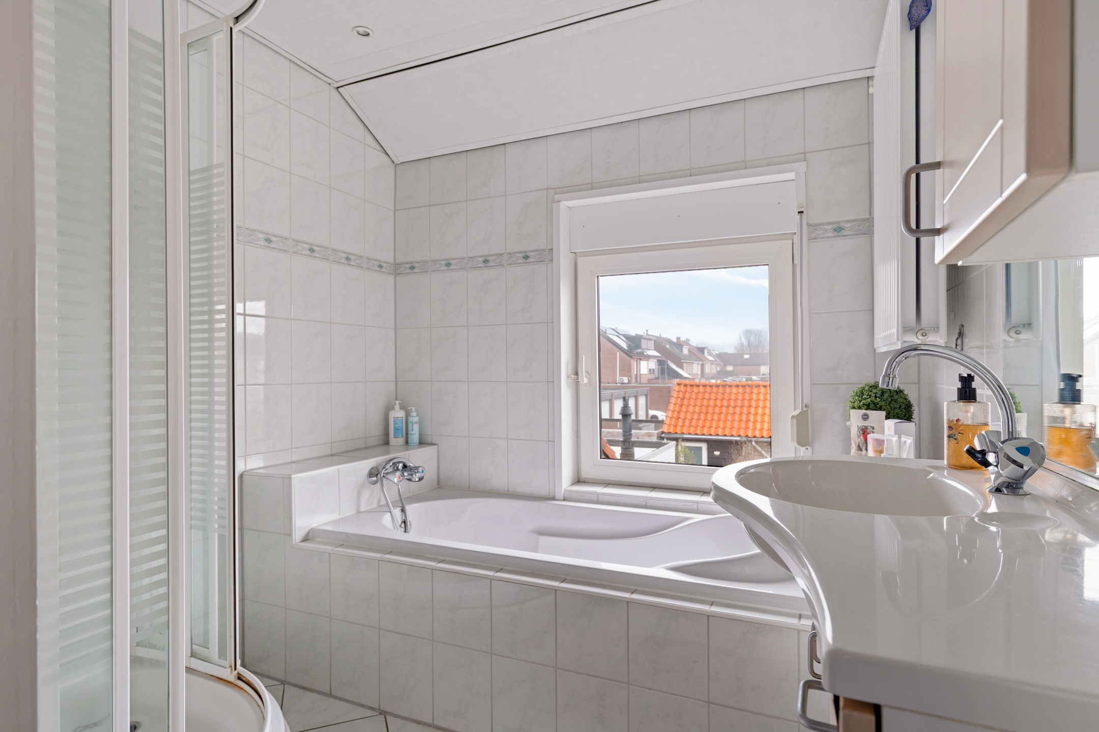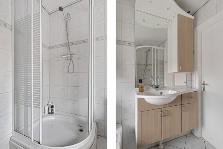 De badkamer is in het verleden verplaatst, wat heeft geresulteerd in een verrassend ruime badkamer. Deze is uitgerust met een douche, een ligbad en een wastafel. Daarnaast is er een aparte waskamer aanwezig, een luxe en praktische toevoeging die zorgt voor extra gemak en rust in het dagelijks gebruik.