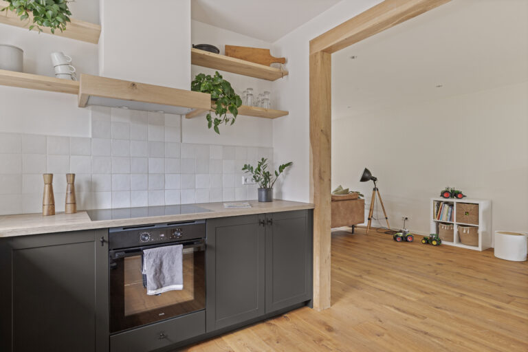 De sfeervolle keuken (2023) is gemaakt voor kookliefhebbers. Het heeft een ruim werkblad en is van alle gemakken voorzien. Vanuit de keuken bereik je de bijkeuken en de prachtige badkamer.