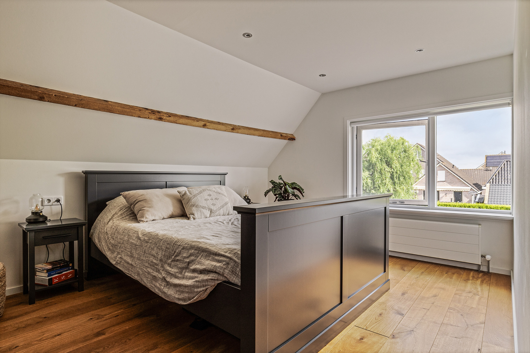 Op de verdieping bevinden zich drie slaapkamers, waarvan twee met prachtige inbouwkasten en één met een bedstee. Daarnaast is er een toiletruimte met toilet en wastafel.