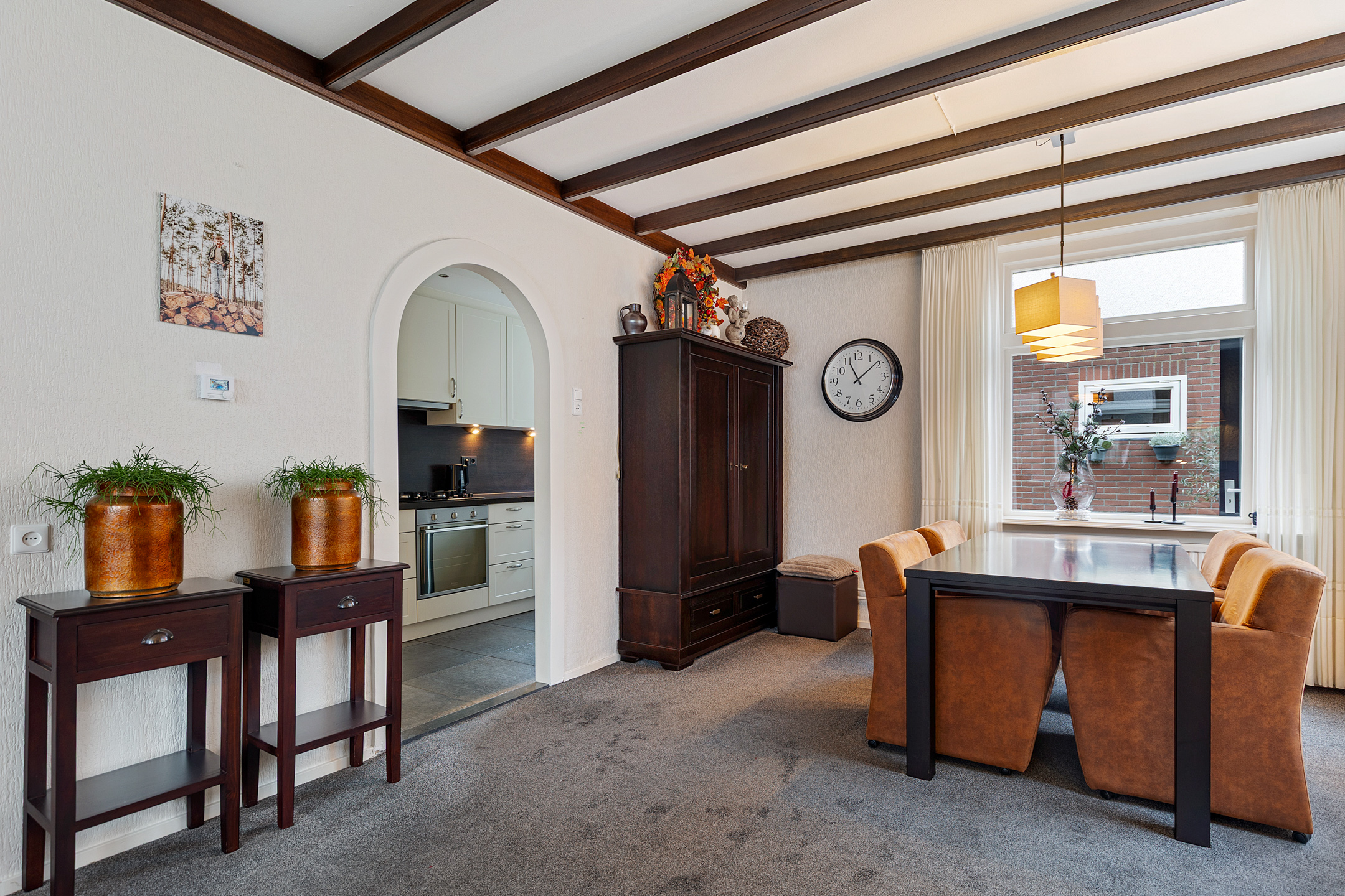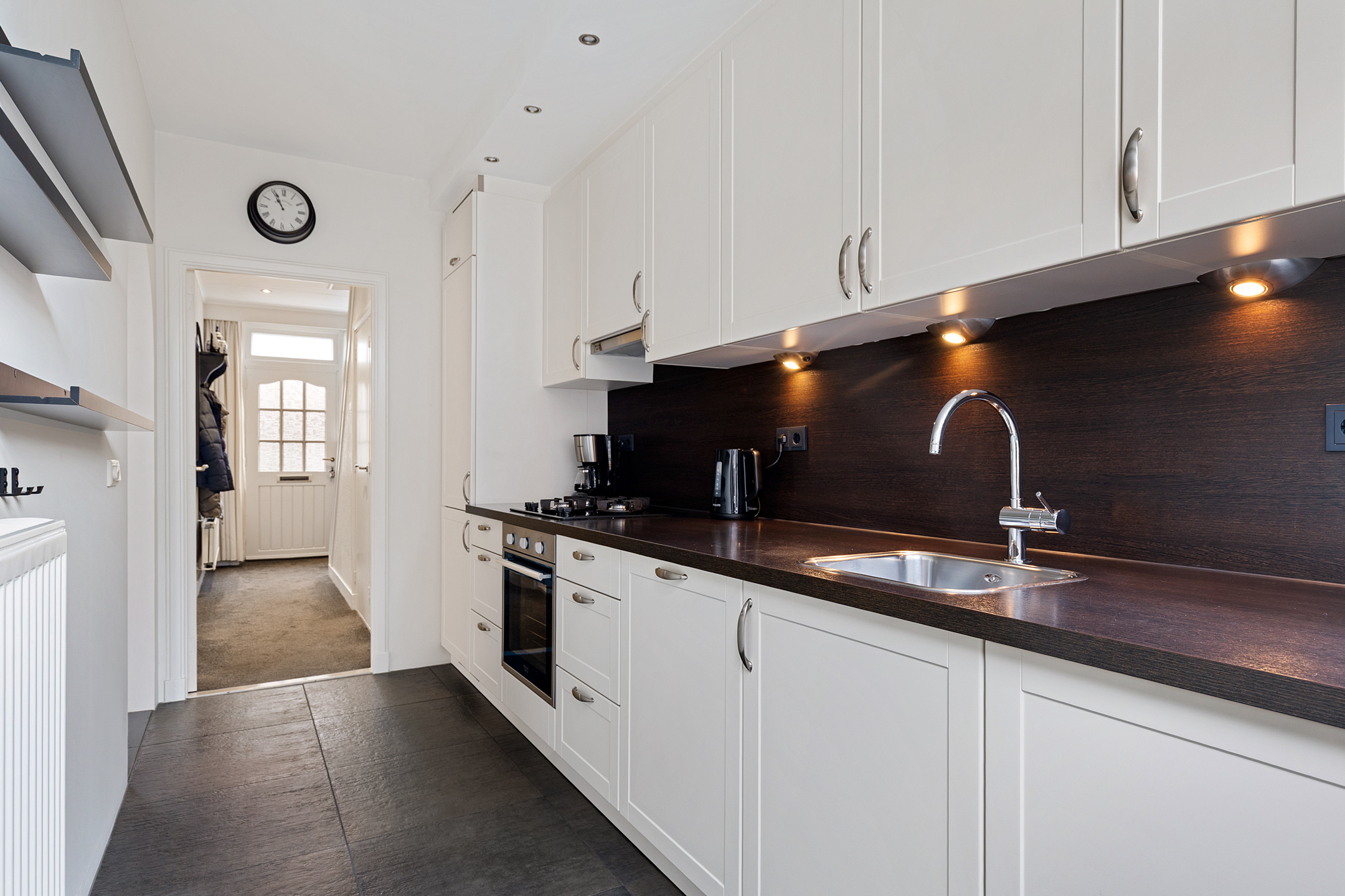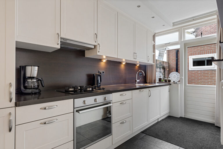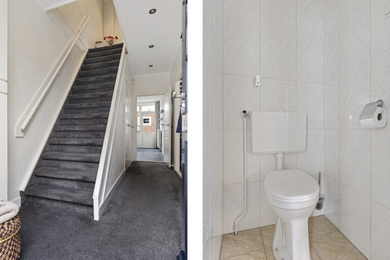 Via de entree kom je in de hal met meterkast, toilet, trapopgang en een praktische trapkast. Vanuit de hal heb je toegang tot zowel de keuken als de woonkamer. De woonkamer is royaal van opzet en strekt zich uit over de volledige lengte van de woning. Grote raampartijen aan de voor-, achter- én zijkant zorgen voor een prettige lichtinval en een levendig straatbeeld. Er is volop ruimte voor een comfortabele zithoek en een ruime eethoek. De keuken is uitgevoerd in een tijdloze kleurstelling en beschikt over een gasfornuis, koelkast, oven en afzuigkap. Dankzij de rechte opstelling is de keuken praktisch en overzichtelijk ingericht. Vanuit de keuken heb je direct toegang tot de achtertuin, wat zorgt voor een fijne verbinding tussen binnen en buiten.
