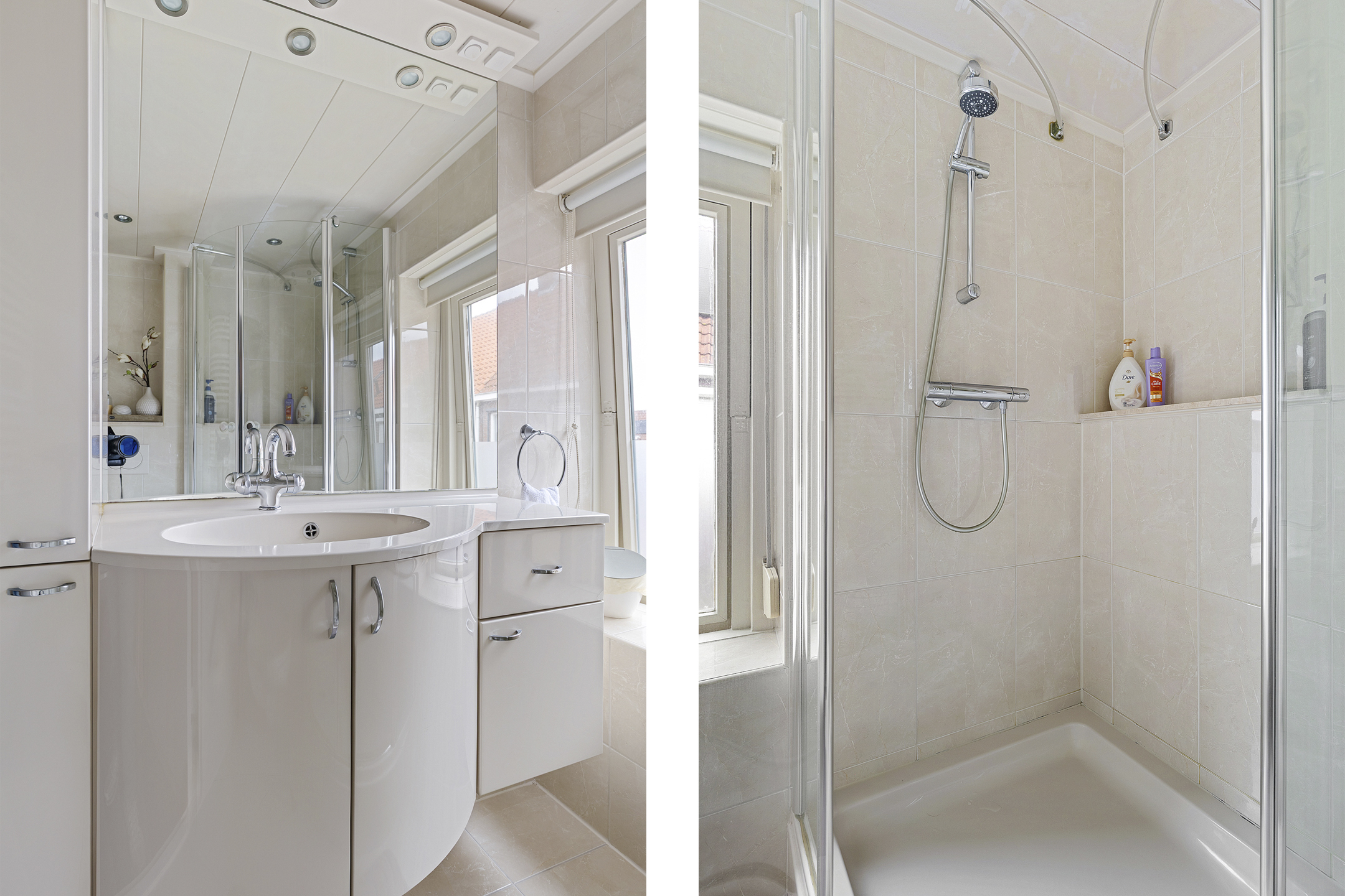Op de eerste verdieping bevinden zich drie slaapkamers, bereikbaar via de overloop. De kamers zijn functioneel van formaat en flexibel in te richten. Eén van de slaapkamers beschikt over een vaste kast. De badkamer is praktisch ingericht en voorzien van een douche, toilet en wastafel. Vanuit de overloop leidt de vaste trap naar de tweede verdieping.