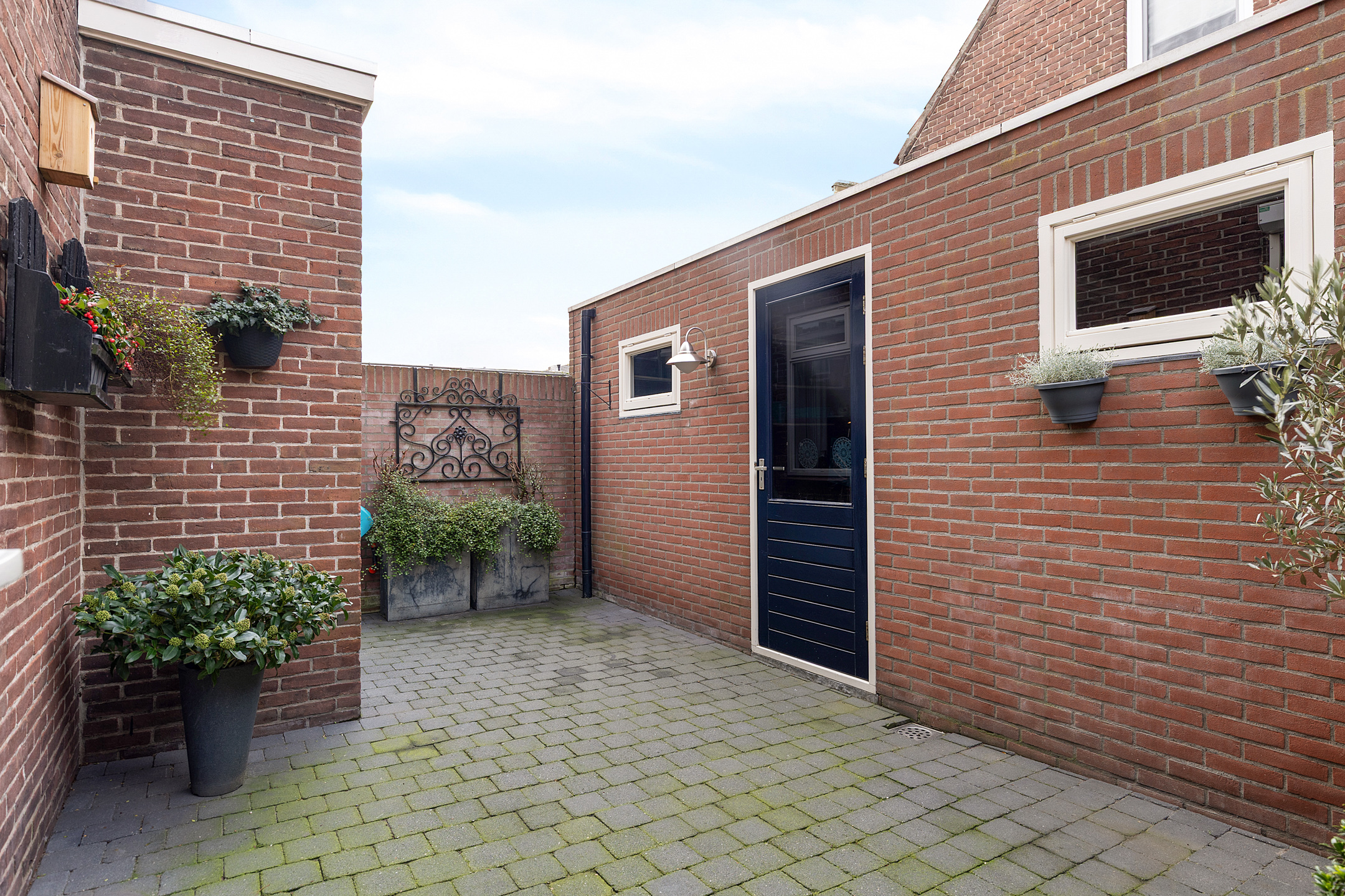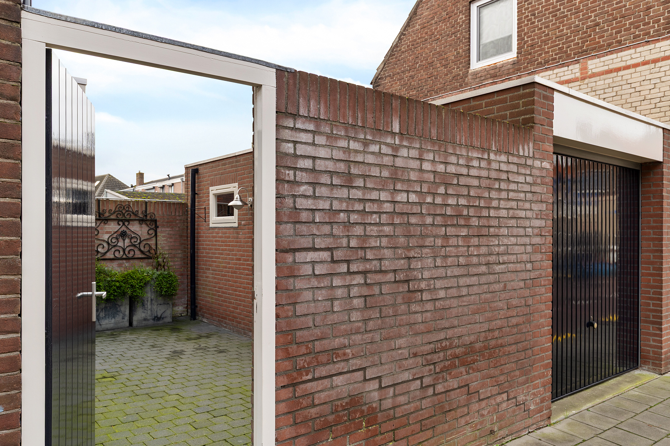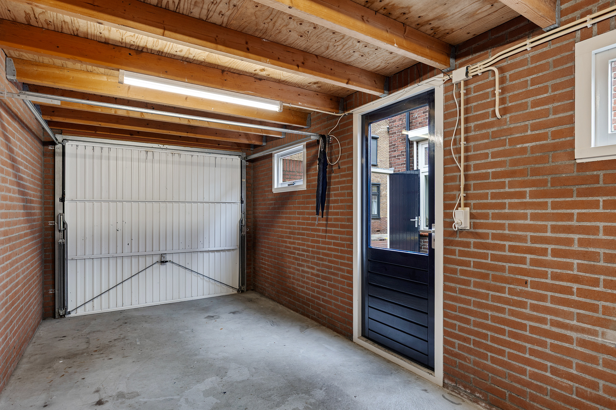 De achtertuin is bereikbaar via de keuken en biedt een beschutte plek om buiten te zitten. De tuin is praktisch ingericht en eenvoudig te onderhouden. Aan de achterzijde bevindt zich een stenen garage, die volop ruimte biedt voor het stallen van een auto, fietsen en extra opslag. Een fijne en functionele toevoeging die het wooncomfort compleet maakt.