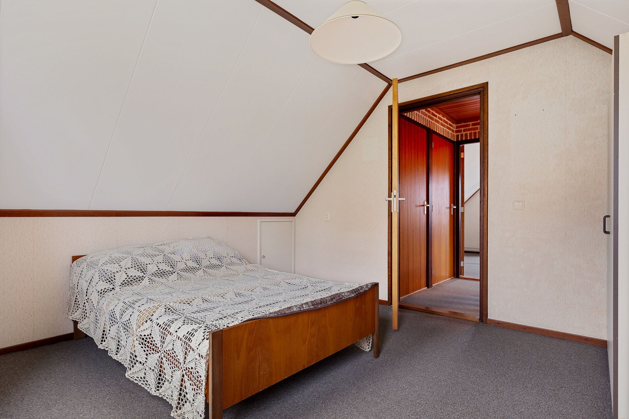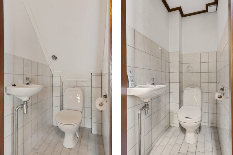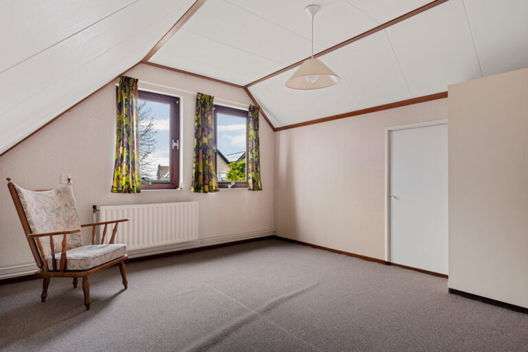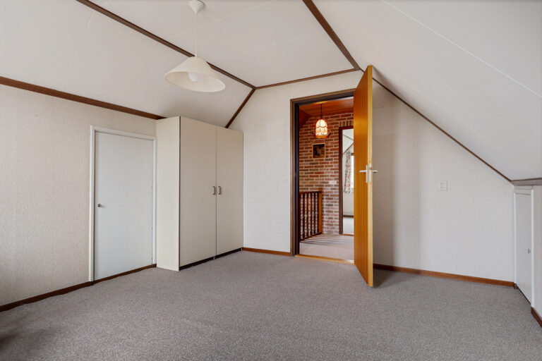 Via de trap in de hal kom je op de eerste verdieping. Op de overloop heb je toegang tot twee slaapkamers. Beide kamers zijn prettig van formaat en beschikken over praktische bergruimte achter de knieschotten. Op de overloop vind je daarnaast een tweede toilet en extra kastruimte, wat deze verdieping compleet maakt.