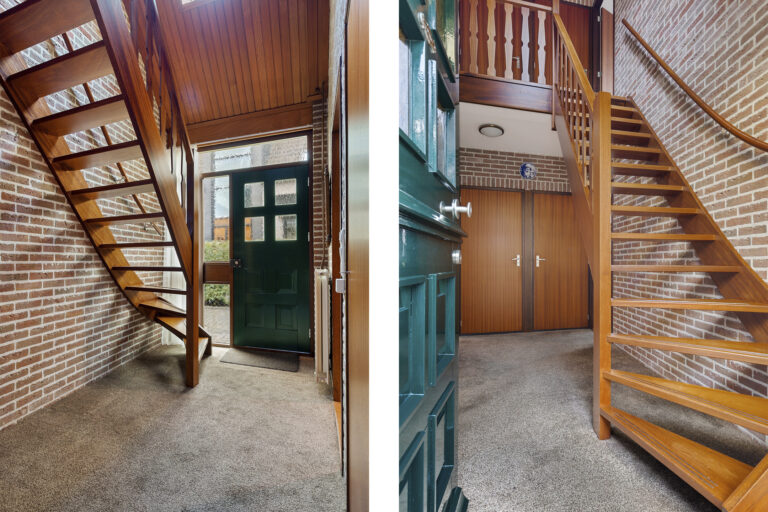 Via de entree aan de voorzijde van de woning stap je binnen in de hal, waar je direct merkt dat de indeling praktisch en overzichtelijk is. Vanuit hier heb je toegang tot vrijwel alle ruimtes op de begane grond. In de hal is ruimte voor een garderobe en vind je het toilet, de badkamer, de trapopgang naar de verdieping en de doorgang naar de woonkamer.