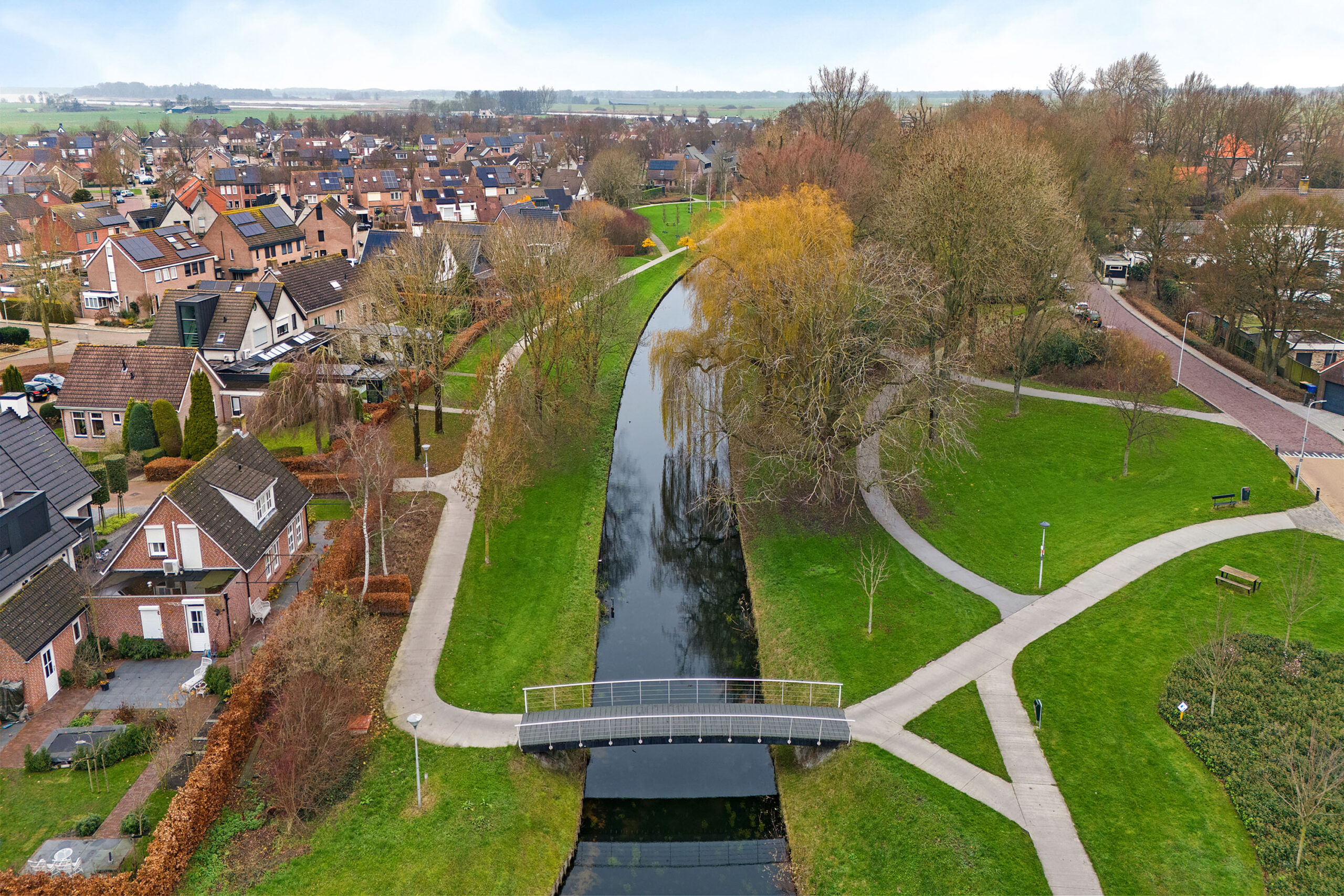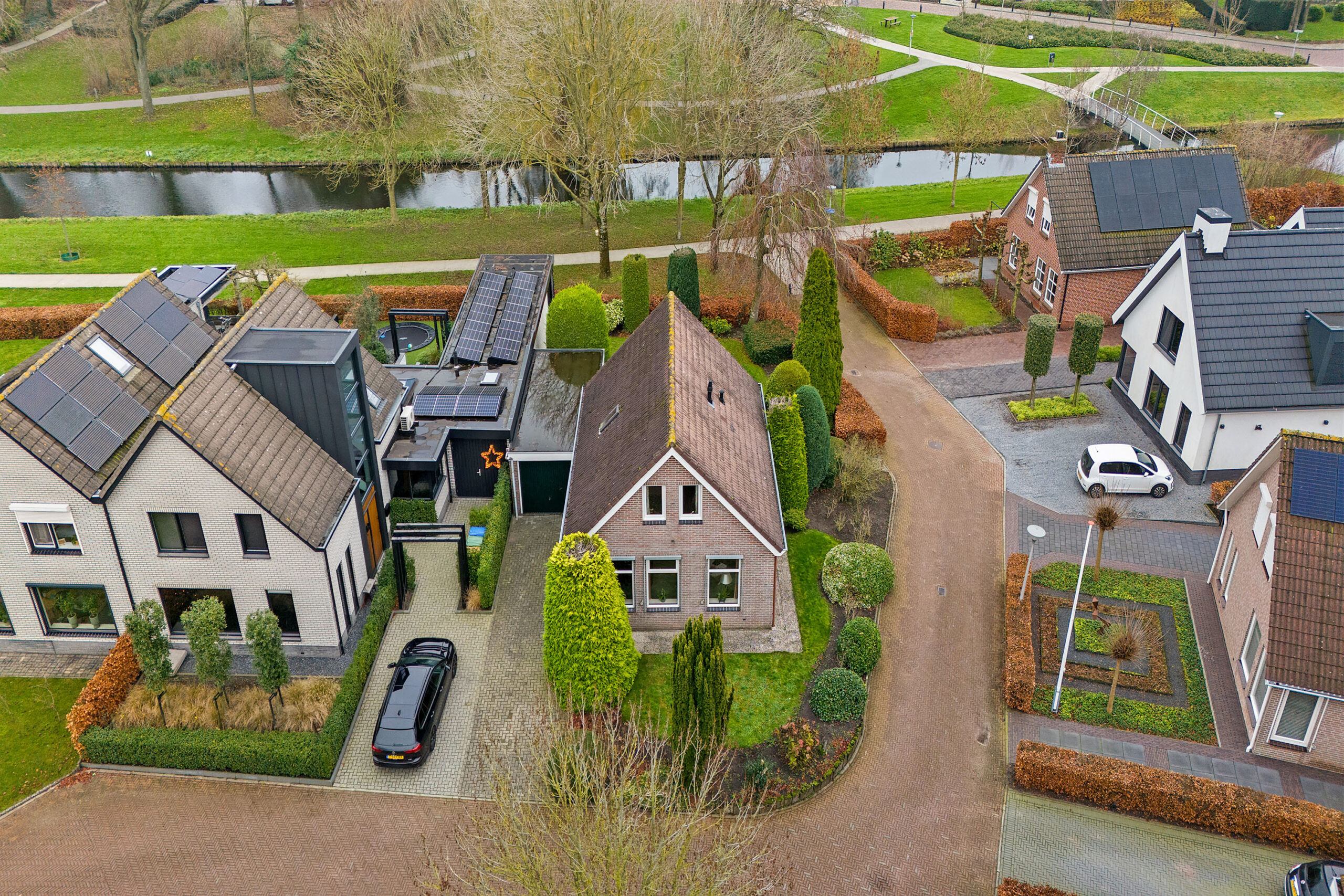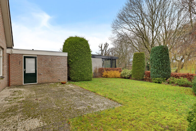 Rondom de woning ligt een tuin met veel groen en privacy. Dankzij de ligging direct naast het park geniet je hier van rust, ruimte en een vrij gevoel. Of je nu in de zon wilt zitten of juist een beschut plekje zoekt, het kan hier allemaal. Het park voelt als een natuurlijke verlenging van je leefomgeving. Je loopt vanuit huis zó het groen in voor een ontspannen wandeling, een rondje met de hond of gewoon om even tot rust te komen. De slingerende paden, bruggetjes en het water geven het park een speels karakter.