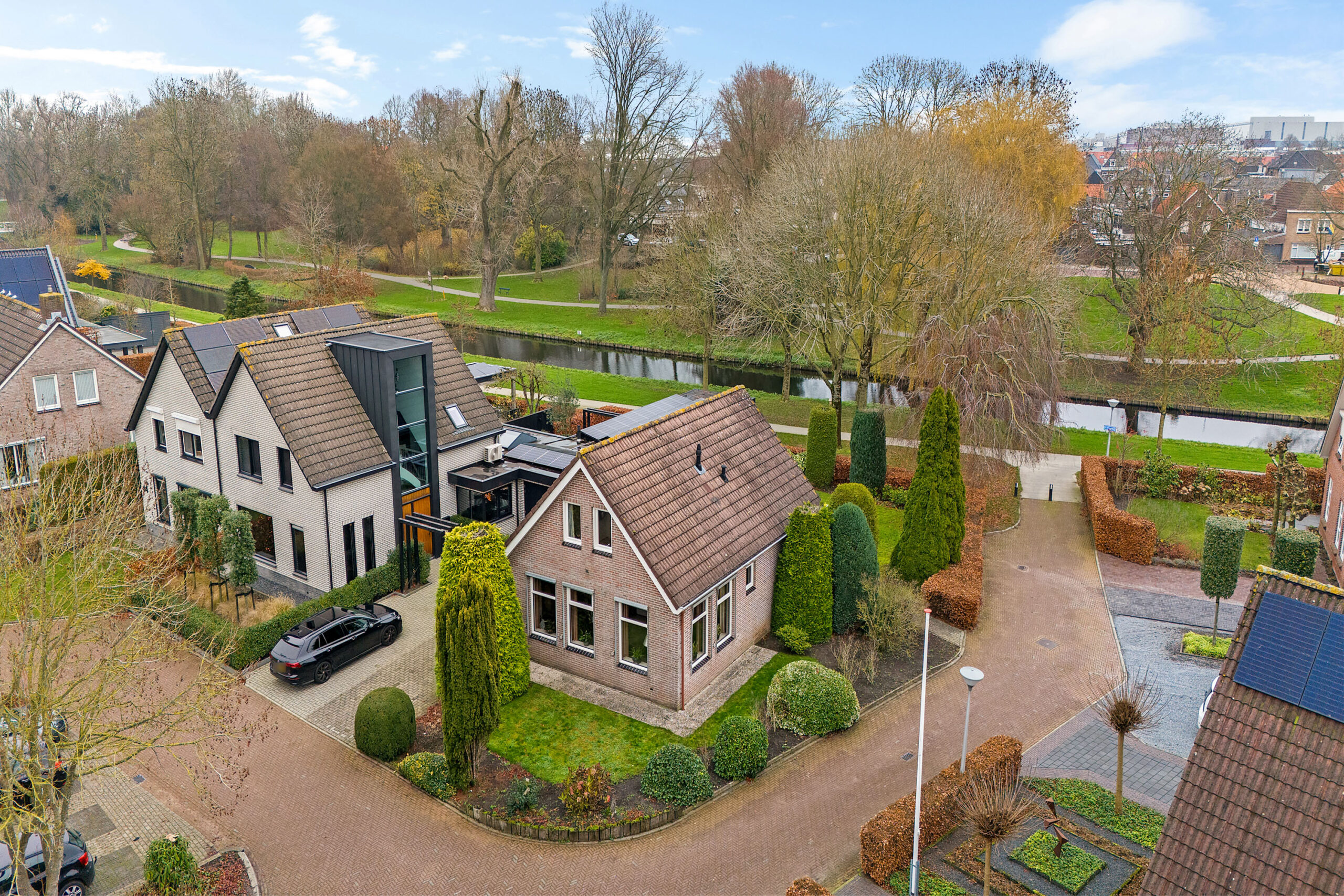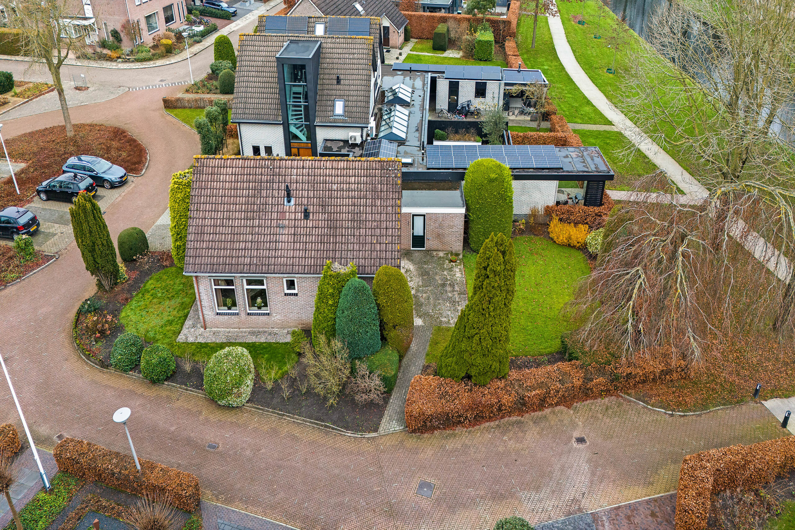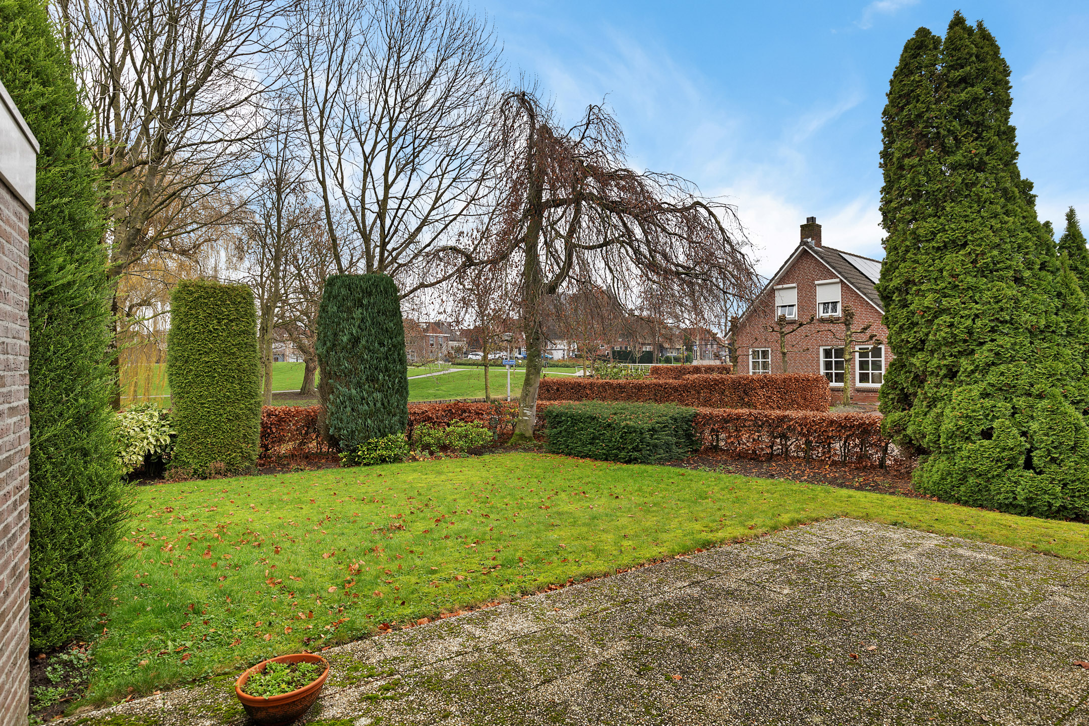 Rondom de woning ligt een tuin met veel groen en privacy. Dankzij de ligging direct naast het park geniet je hier van rust, ruimte en een vrij gevoel. Of je nu in de zon wilt zitten of juist een beschut plekje zoekt, het kan hier allemaal. Het park voelt als een natuurlijke verlenging van je leefomgeving. Je loopt vanuit huis zó het groen in voor een ontspannen wandeling, een rondje met de hond of gewoon om even tot rust te komen. De slingerende paden, bruggetjes en het water geven het park een speels karakter.