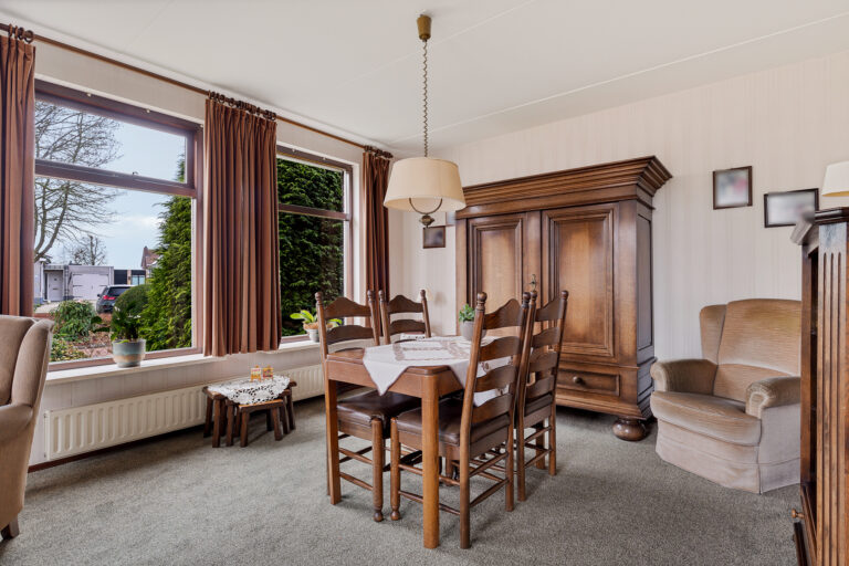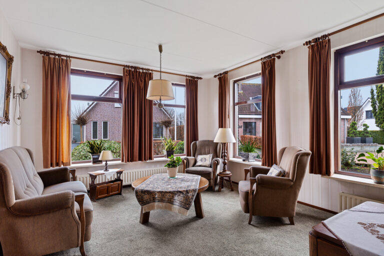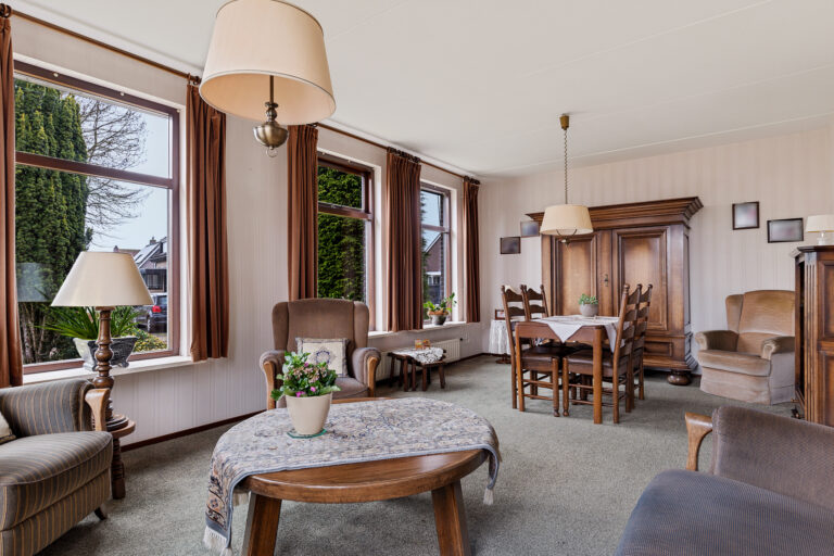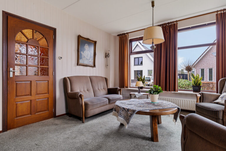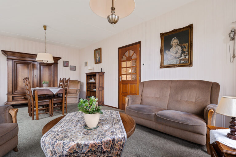 De woonkamer ligt aan de voorzijde van de woning en is heerlijk licht dankzij de grote raampartijen. Hier heb je een fijn uitzicht op het groen rondom de woning en voldoende ruimte voor zowel een comfortabele zithoek als een eethoek. Dit is een prettige leefruimte waar je je al snel thuis zult voelen.