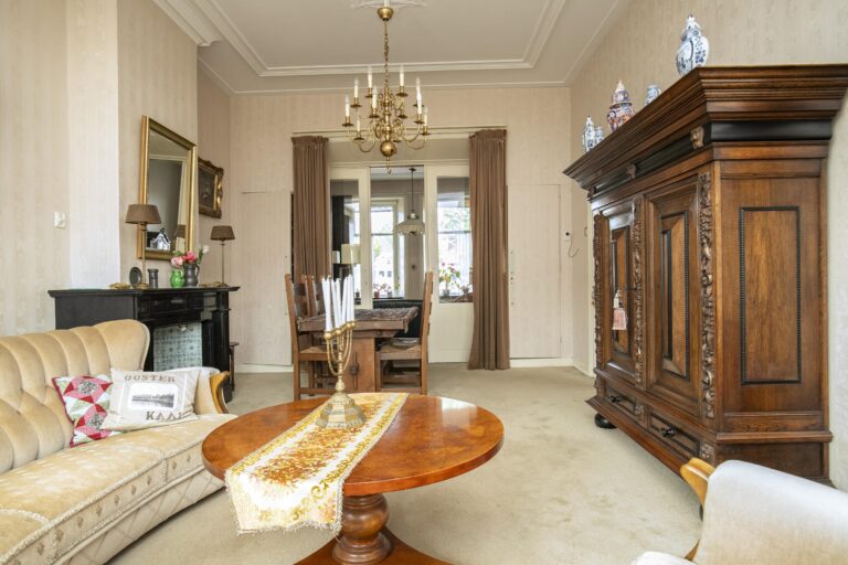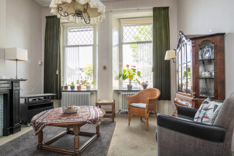 Aan de fraaie Oosterkaai, direct aan de sfeervolle haven van Genemuiden, staat dit imposante herenhuis met een rijke historie en een gevel die direct in het oog springt. Het pand, een gemeentelijk monument, ademt de grandeur van vervlogen tijden. Authentieke details zoals hoge plafonds met ornamenten, glas-in-loodramen, paneeldeuren en sierlijke trappen zijn nog volop aanwezig en vormen samen een prachtig decor voor wie houdt van karakter en ambacht.