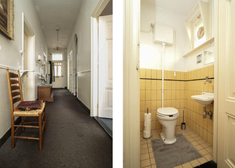 Wie de voordeur opent, stapt binnen in een woning met een ziel. De imposante hal met originele trap, hoge plafonds en klassieke raampartijen straalt sfeer en historie uit. Tegelijkertijd is duidelijk dat het pand een grondige modernisering en restauratie behoeft, een perfecte uitdaging voor wie met liefde voor oude details en een creatieve blik aan de slag wil.