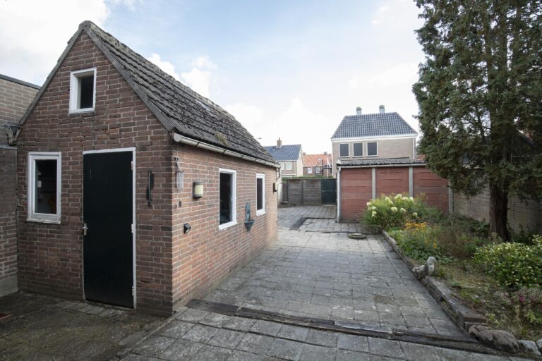Achter in de tuin bevindt zich een vrijstaande stenen berging en daarachter een ruime garage, bereikbaar via de Achterstraat. De garage is voorzien van een kanteldeur en biedt ruimte voor één auto, fietsen of opslag.