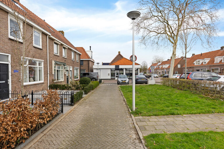 De woning ligt aan een rustige straat met een brede groenstrook direct voor de deur. Een ideale plek voor kinderen om te spelen en voor een ontspannen woongevoel zonder directe inkijk.