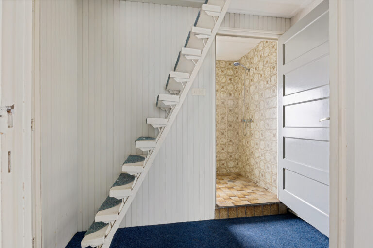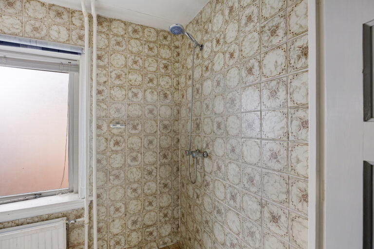 Op de eerste verdieping bevinden zich twee slaapkamers, beide met prettig daglicht en goede afmetingen. De grootste slaapkamer ligt aan de voorzijde en biedt voldoende ruimte voor een tweepersoonsbed en kastruimte. De tweede kamer is ideaal als kinder-, werk- of hobbykamer. De badkamer is compact en eenvoudig, voorzien van een douche en wastafel. Ook hier liggen mooie kansen om deze ruimte volledig naar deze tijd te brengen en bijvoorbeeld uit te breiden of anders in te delen.