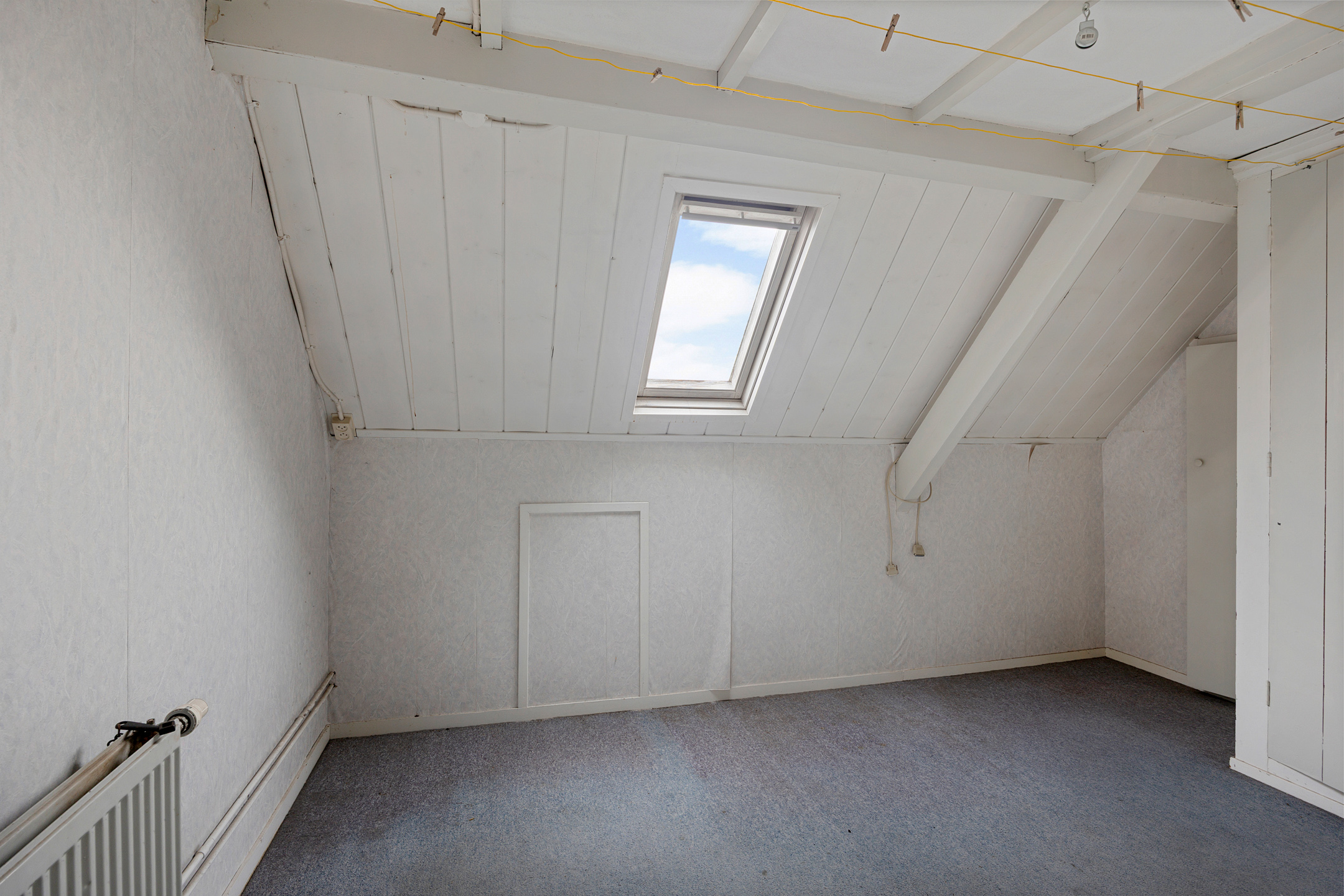 De tweede verdieping is een waardevolle toevoeging aan de woning. Hier vind je een derde slaapkamer met dakraam en extra bergruimte. Door de slimme indeling is dit een prima slaapkamer, maar ook zeer geschikt als werk- of hobbyruimte. Op de overloop is daarnaast ruimte voor opslag en het plaatsen van installaties.