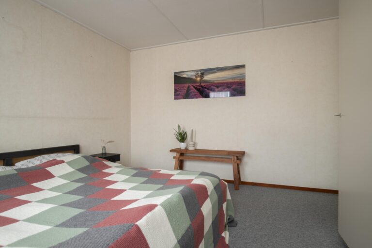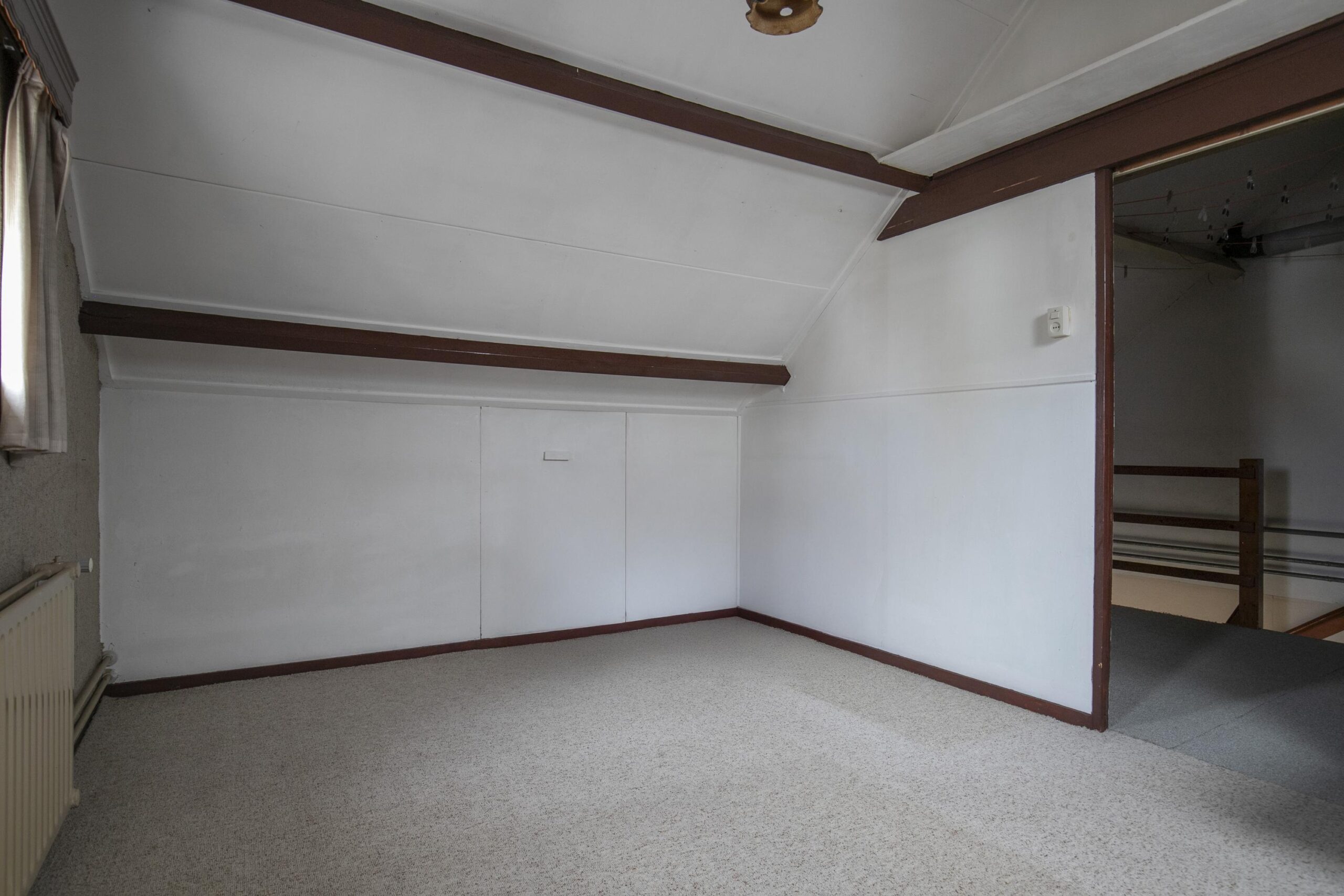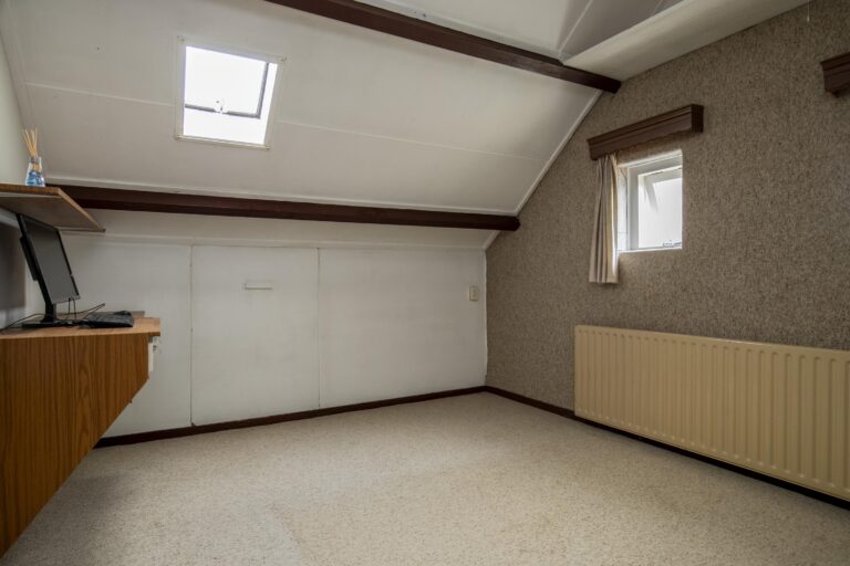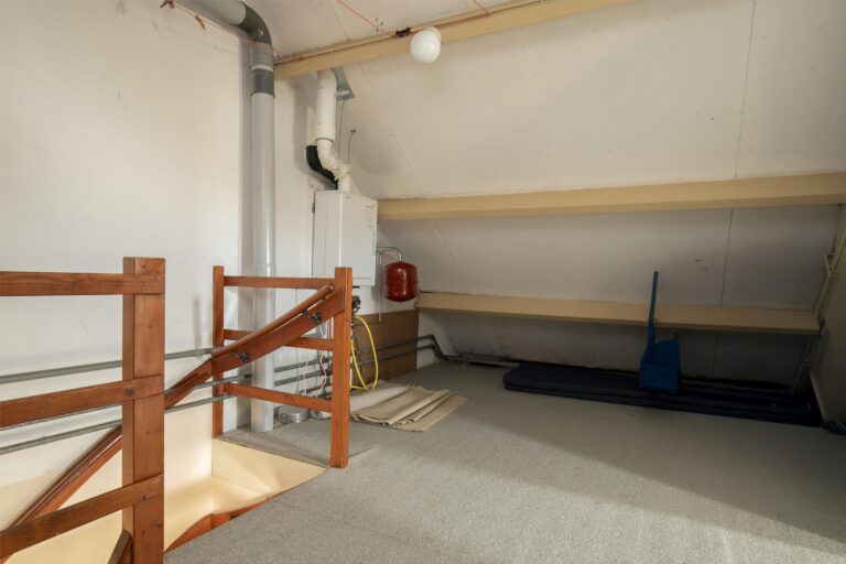 Via de vaste trap bereik je de tweede verdieping. Hier bevindt zich een ruime vierde slaapkamer, ideaal als hoofdslaapkamer, tienerkamer, logeerkamer of werkplek. Op de overloop vind je de opstelplaats van de cv-ketel en extra bergruimte onder de schuine kap.