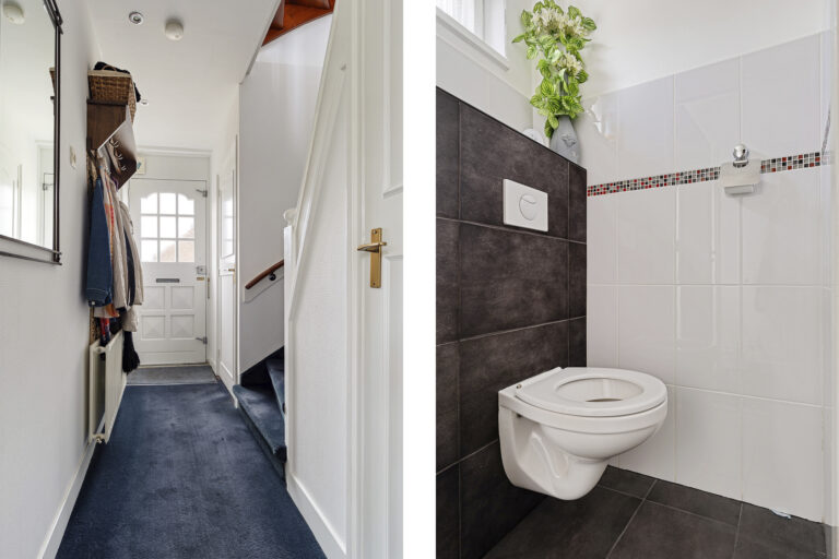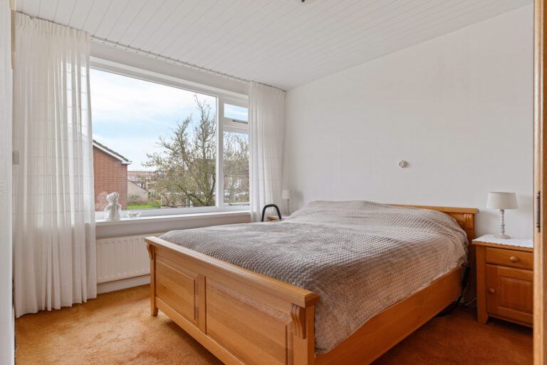 Via de vaste trap bereik je de overloop van de eerste verdieping, die toegang geeft tot drie slaapkamers. De twee grootste kamers zijn ruim van formaat en bieden volop ruimte voor een tweepersoonsbed en kastruimte. Dankzij de fijne lichtinval voelen ook deze kamers licht en comfortabel aan. De derde slaapkamer is iets compacter, maar juist daardoor multifunctioneel. Ideaal als thuiswerkplek, kinderkamer, inloopkast of hobbyruimte, genoeg mogelijkheden!