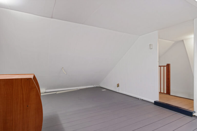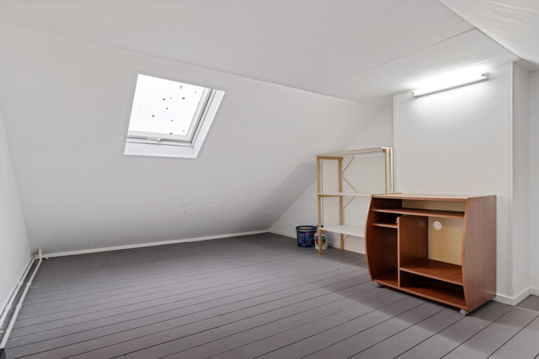De tweede verdieping biedt verrassend veel extra ruimte. Op de voorzolder is zowel aan de voor- als aan de achterzijde bergruimte te vinden. Daarnaast bevindt zich hier de vierde slaapkamer, die ook gebruikt kan worden als hobbyruimte of thuiswerkplek.