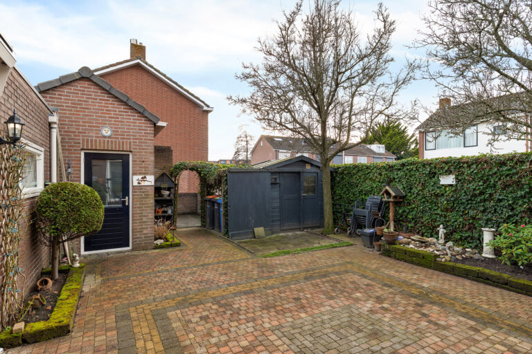 Via de achtertuin loop je direct de zijstraat in, maar je kunt ook langs de woning naar de voorzijde lopen. Daarnaast beschikt de woning over een schuurtje, wat ideaal is voor het opbergen van fietsen, gereedschap en andere spullen. De garage is dankzij de ruimte uitermate geschikt om je auto te parkeren of om te bouwen tot klusgarage.