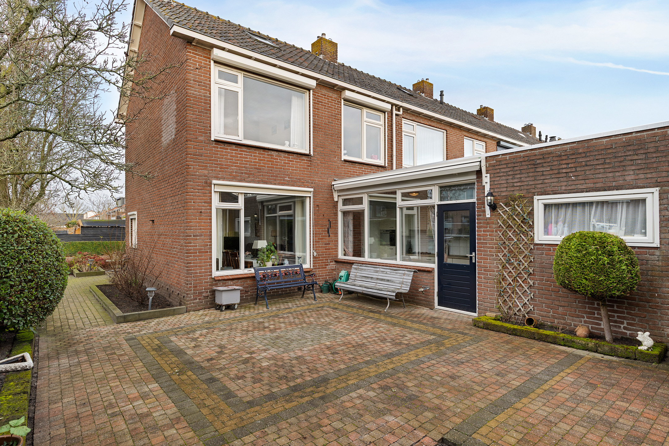 Bij deze hoekwoning hoort een royale, keurig onderhouden tuin. Aan de voorzijde bevindt zich een groen perkje. De achtertuin ligt beschut op het zuiden, waardoor je hier vrijwel de hele dag van de zon kunt genieten. Er is volop ruimte voor een loungeset, een trampoline of een potje voetbal.