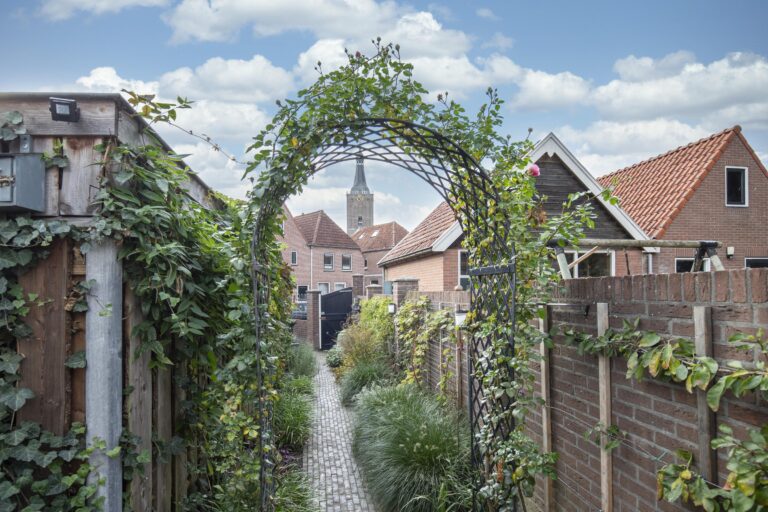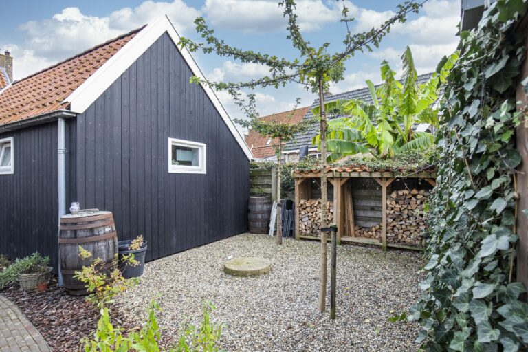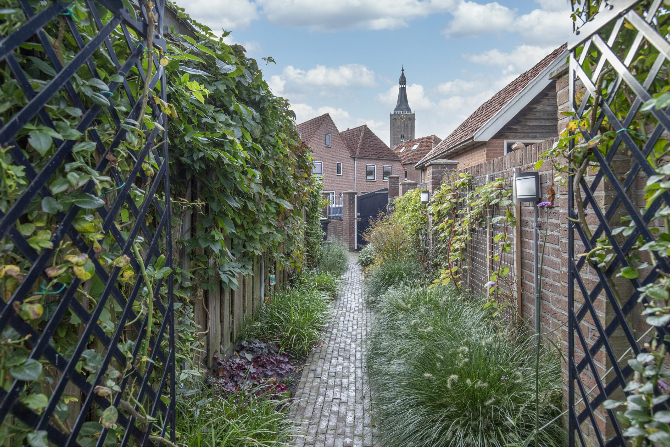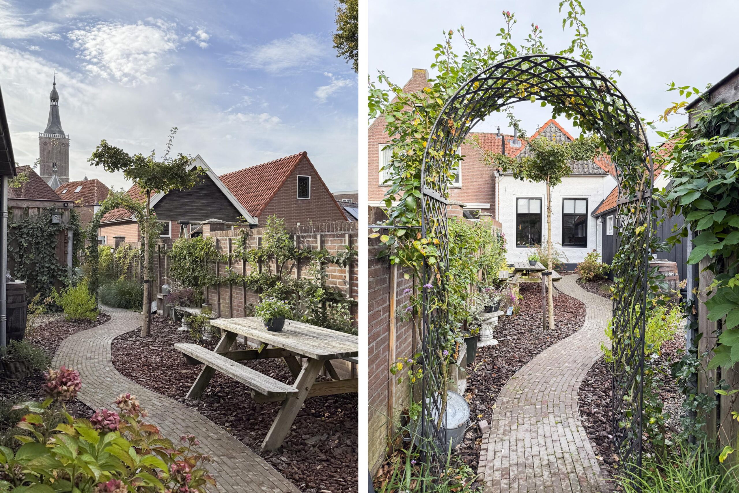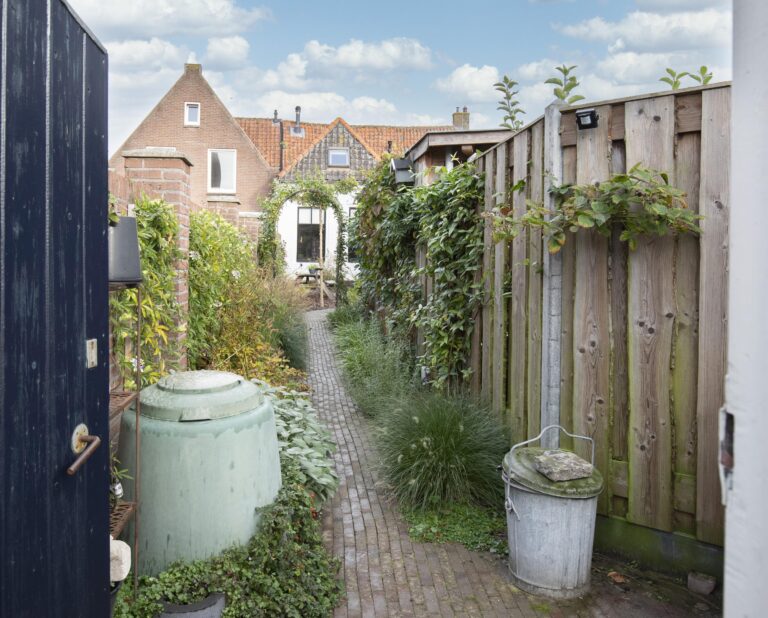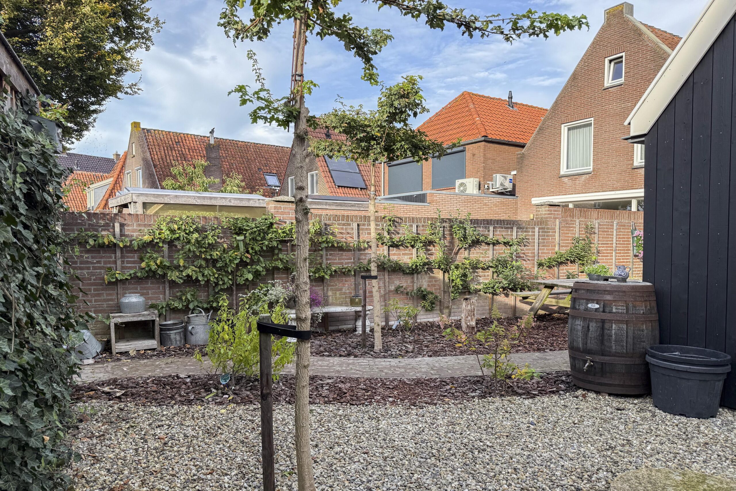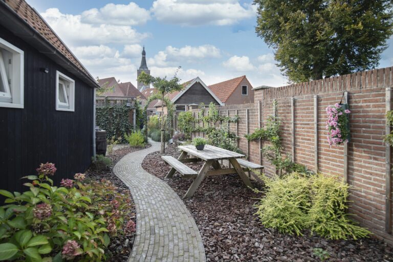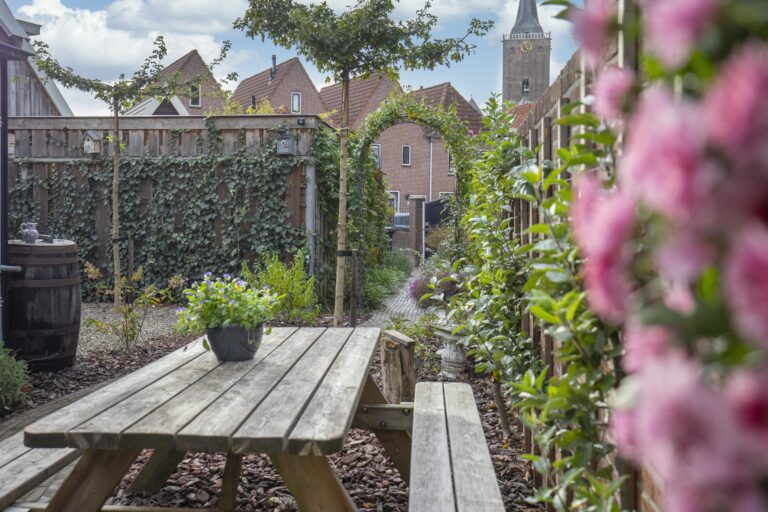 Vanuit de keuken stap je de fraai aangelegde achtertuin in. De tuin is verrassend diep en biedt volop privacy. Een sierlijk slingerend pad leidt je langs borders met groen, bloeiende planten en een gezellig zitgedeelte waar je heerlijk buiten kunt eten of ontspannen.