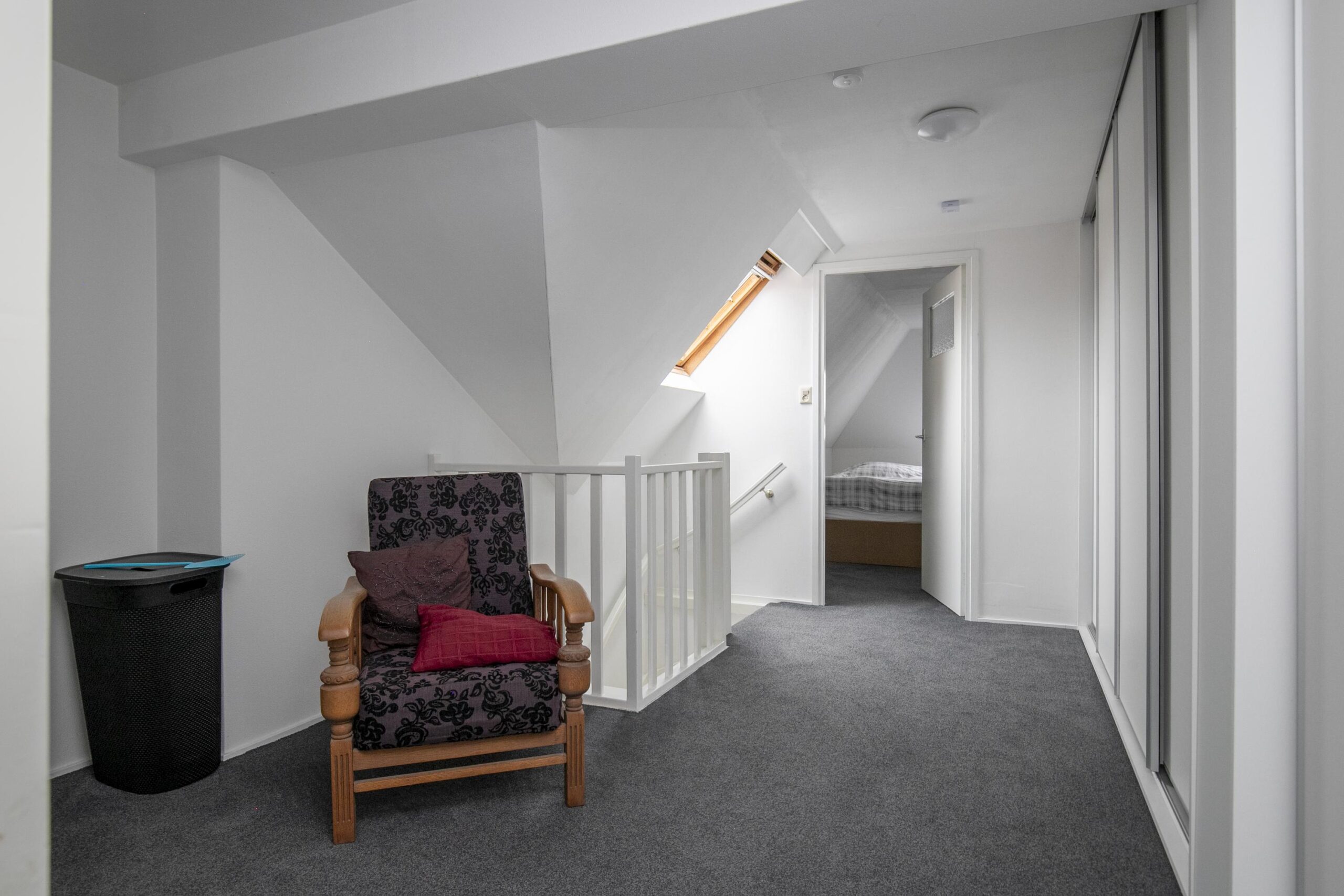 Op de eerste verdieping bevindt zich een royale overloop die de verschillende ruimtes met elkaar verbindt. In de kastenwand is extra bergruimte gecreëerd en bevindt zich de cv-ketel.