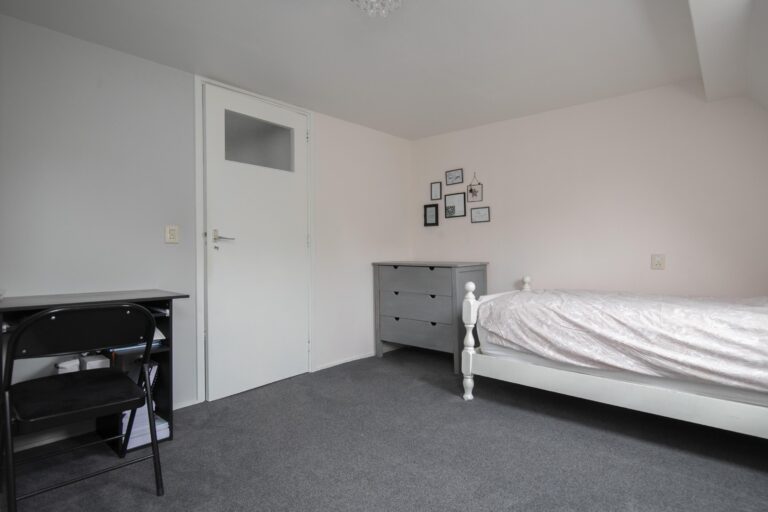 Aan de achterzijde ligt de tweede slaapkamer, een royale ruimte met veel licht, en praktische opbergruimte. Door de indeling kun je hier eenvoudig een kledinghoek of kleine werkplek creëren zonder dat het ten koste gaat van de ruimte.